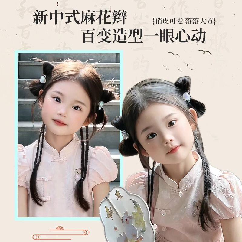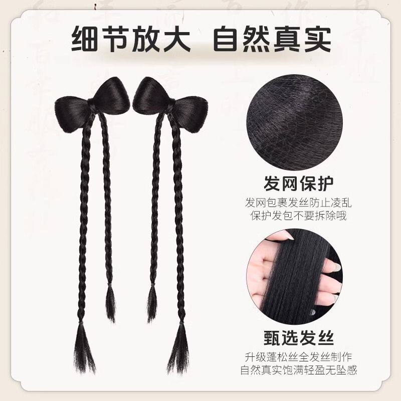 假发丸子头儿童马尾辫汉服龙须辫子发髻古风假发包麻花双马尾国风