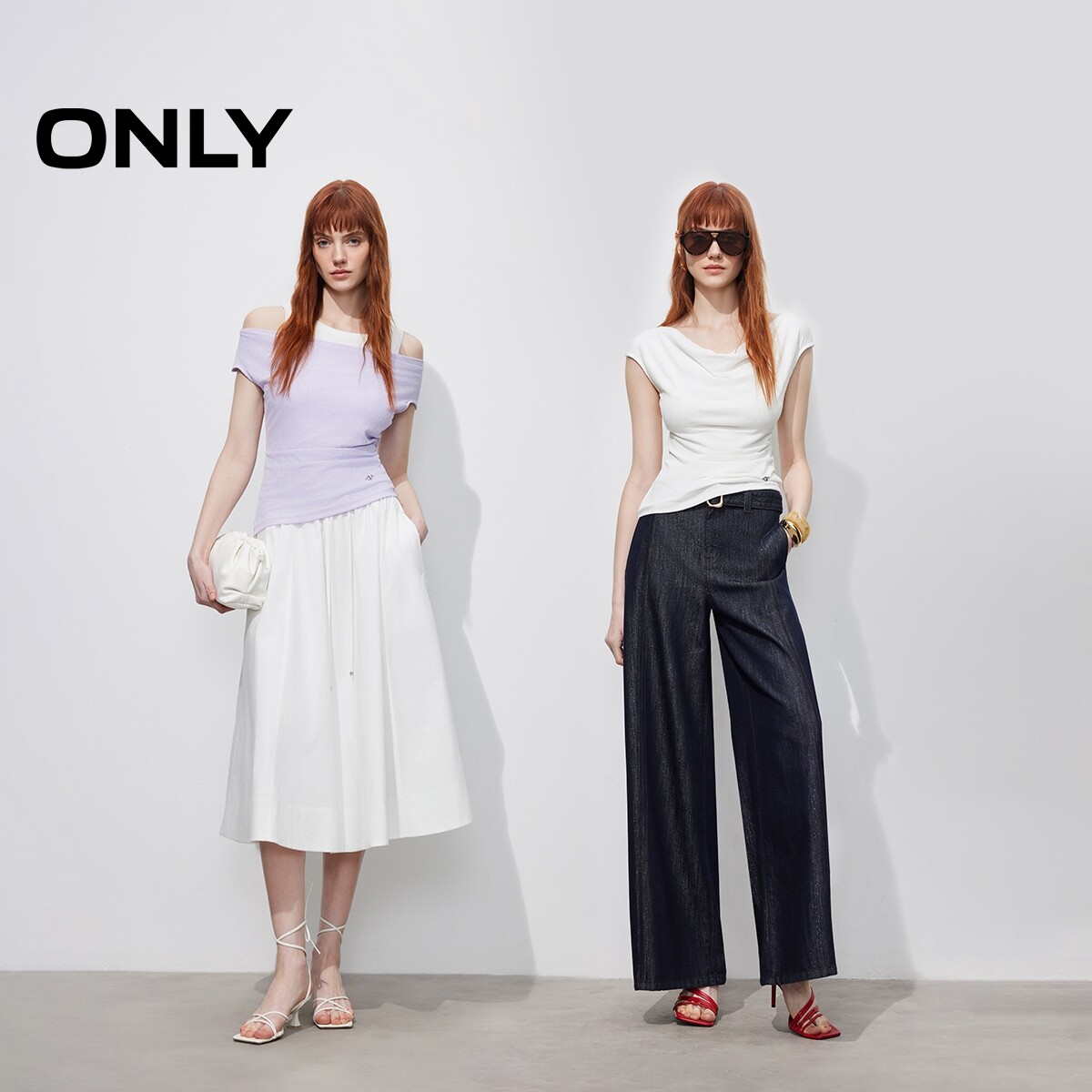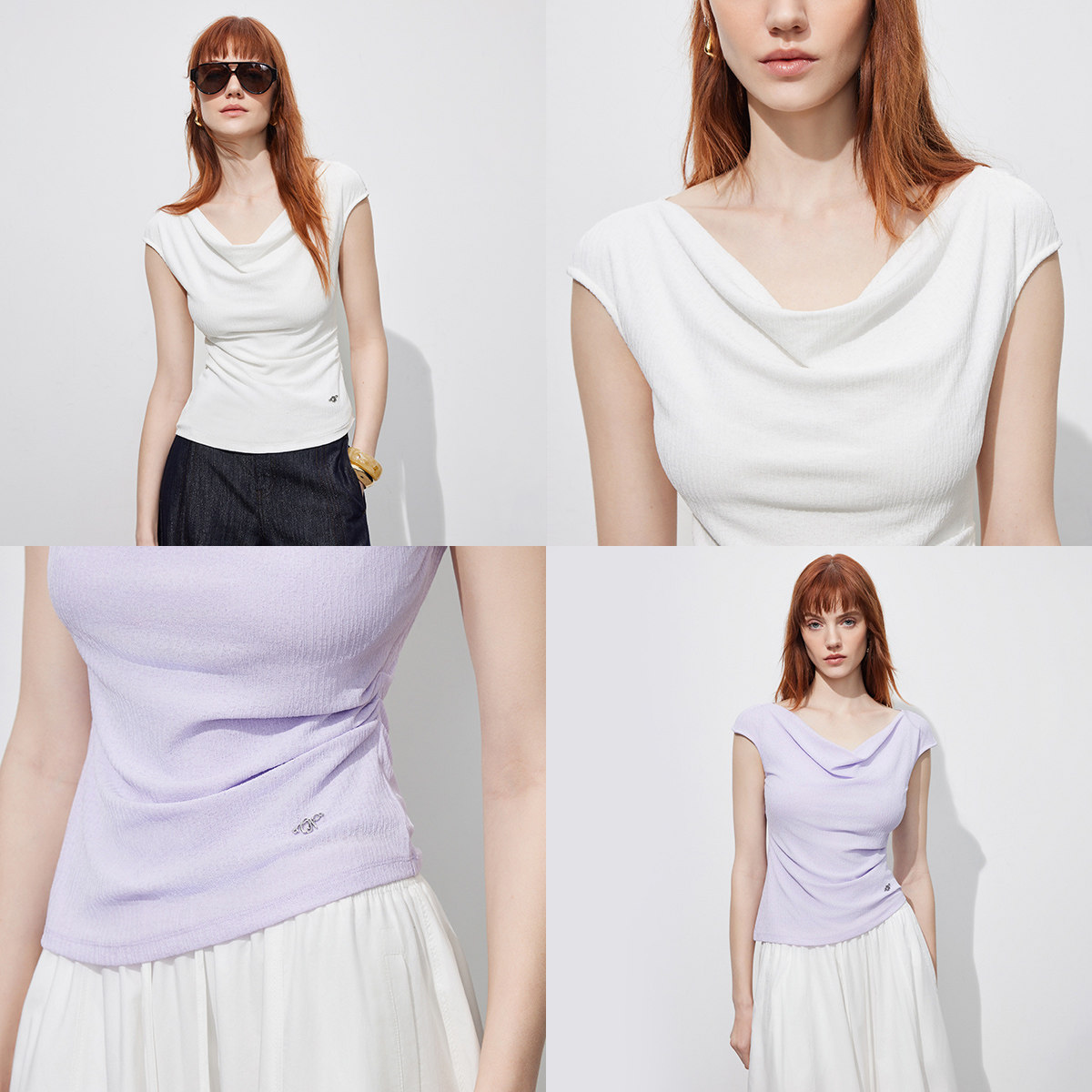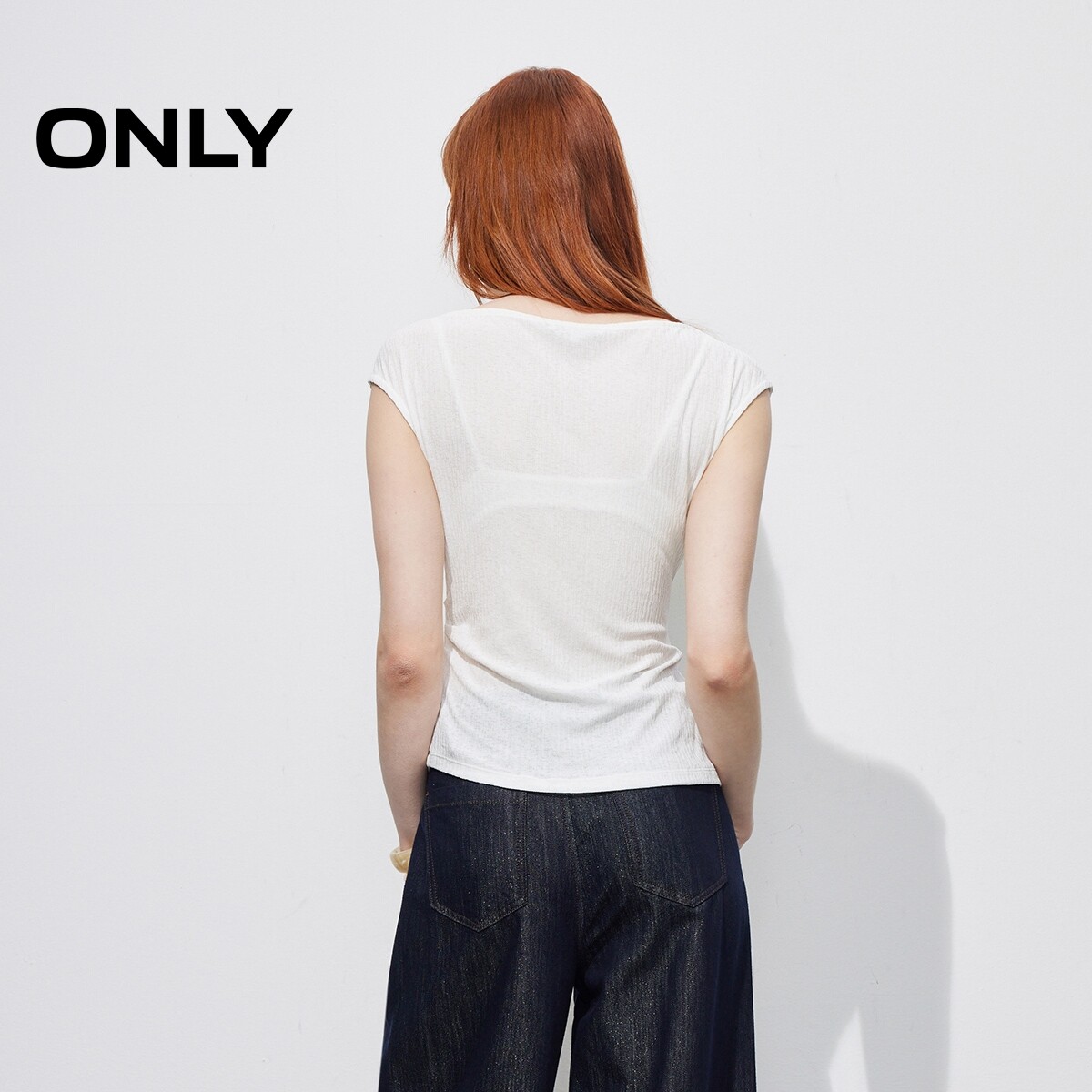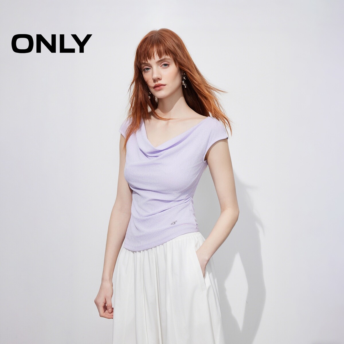 ONLY2026春季新款上衣肌理感收腰抽褶显瘦荡领纯色简约显瘦T恤女