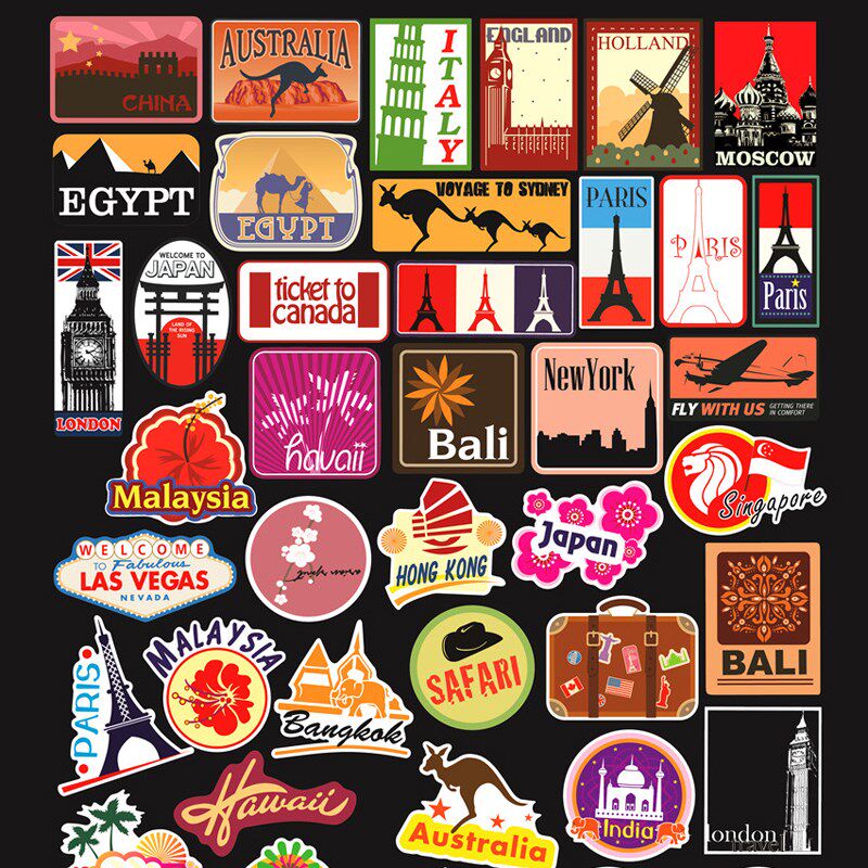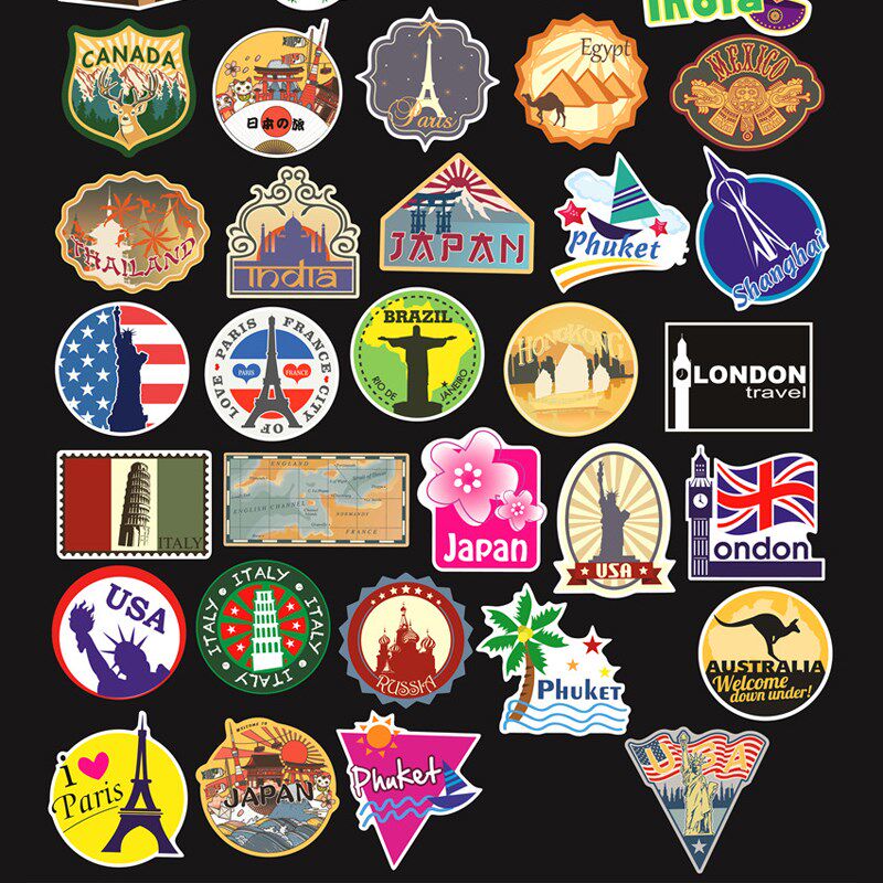 100张装旅行旅游国际名胜建筑滑板吉他拉杆箱防水汽车涂鸦贴画纸