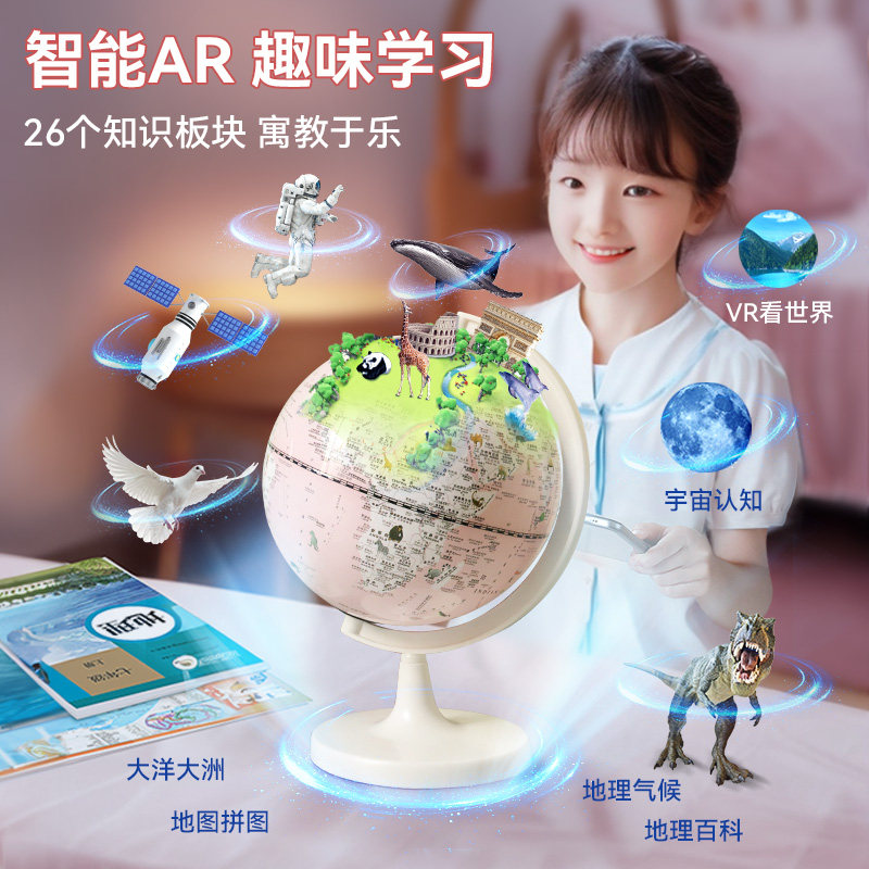 儿童ar智能地球仪双子座灯光小学生用正版粉色马卡龙小型夜光发光台灯初中男孩女孩生日礼物儿童节官方旗舰店