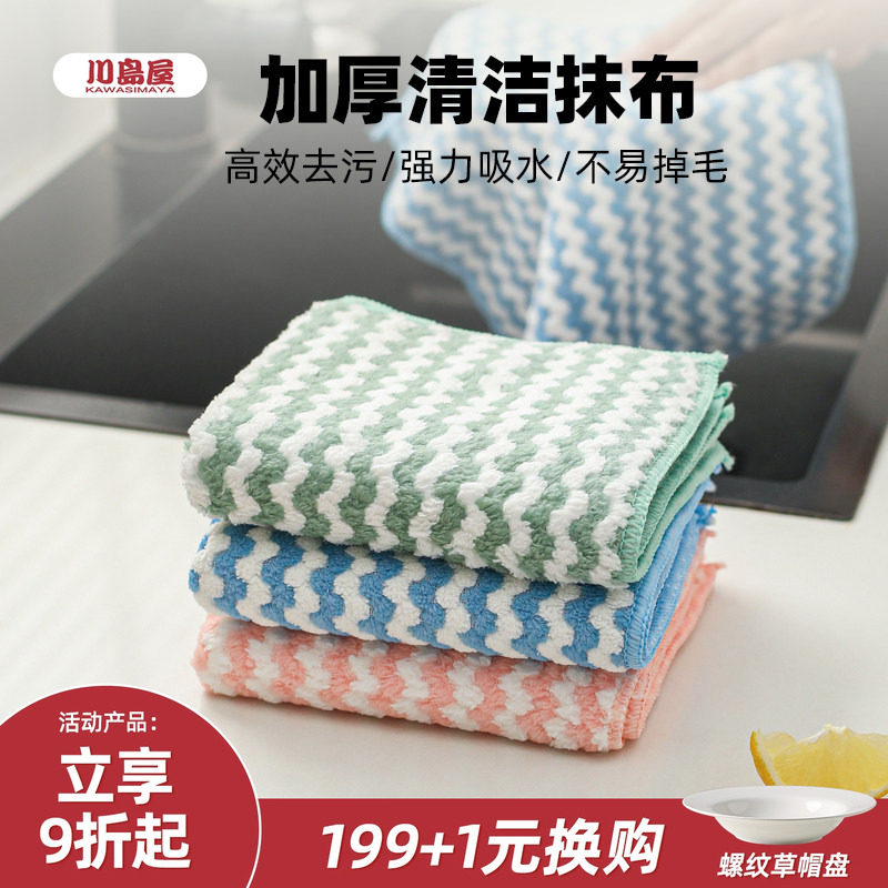 川岛屋抹布厨房专用吸水不易掉毛清洁毛巾擦桌子不易沾油洗碗布