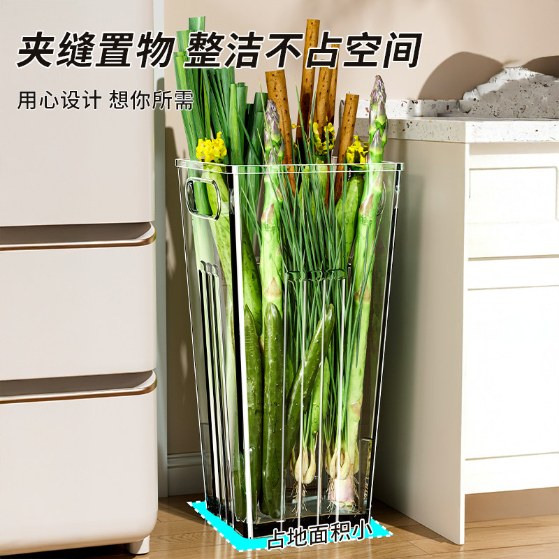 多功能大葱收纳盒铁棍山药透明收纳桶厨房姜蒜食材大容量整理筒
