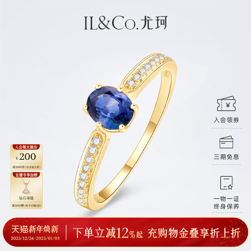 ILCO尤珂「塞纳河畔」黄18k金蓝宝石戒指真钻石镶嵌复古排戒送礼