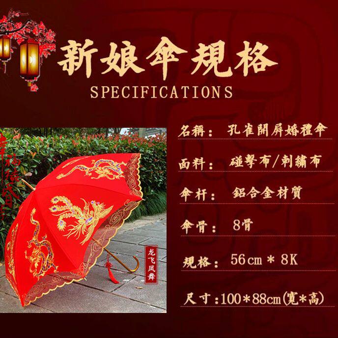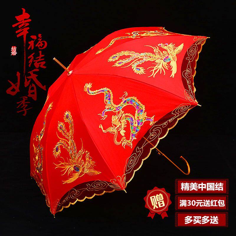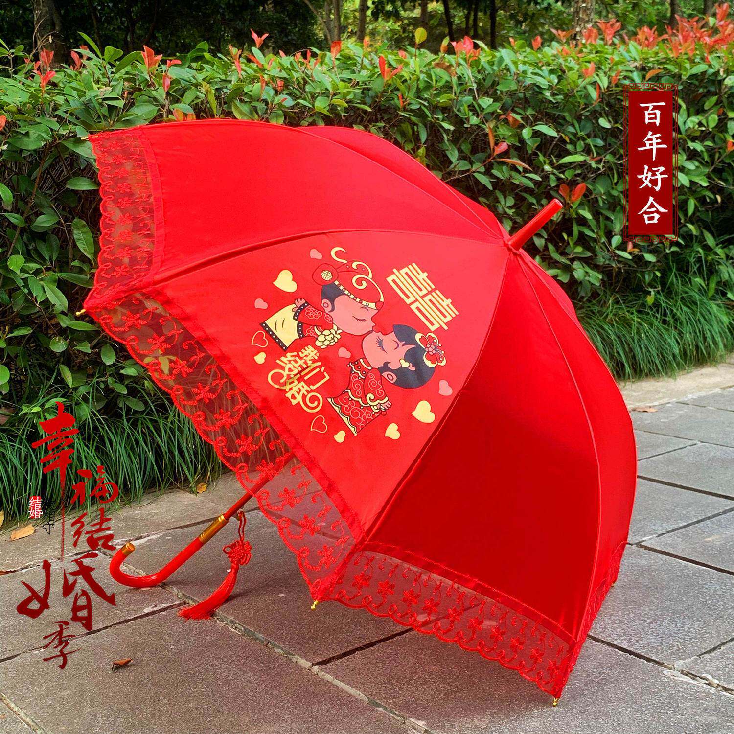 结婚红伞婚庆伞新娘伞结婚用品大红色雨伞出嫁红伞蕾丝刺绣伞中式