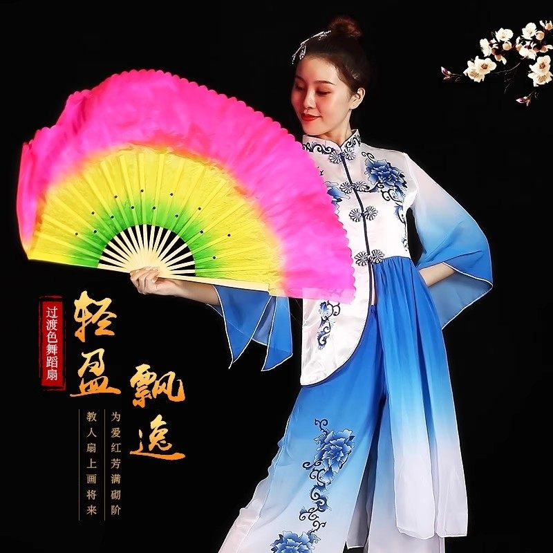八寸秧歌扇子舞蹈跳舞表演道具一对左右手加长儿童双面考级成人