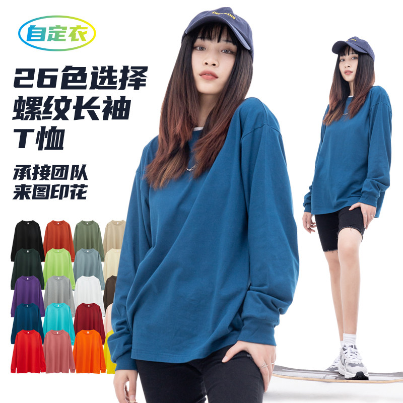ursaltilla纯棉diy定制长袖口袋t恤儿童男女舞蹈服印花工作服打底
