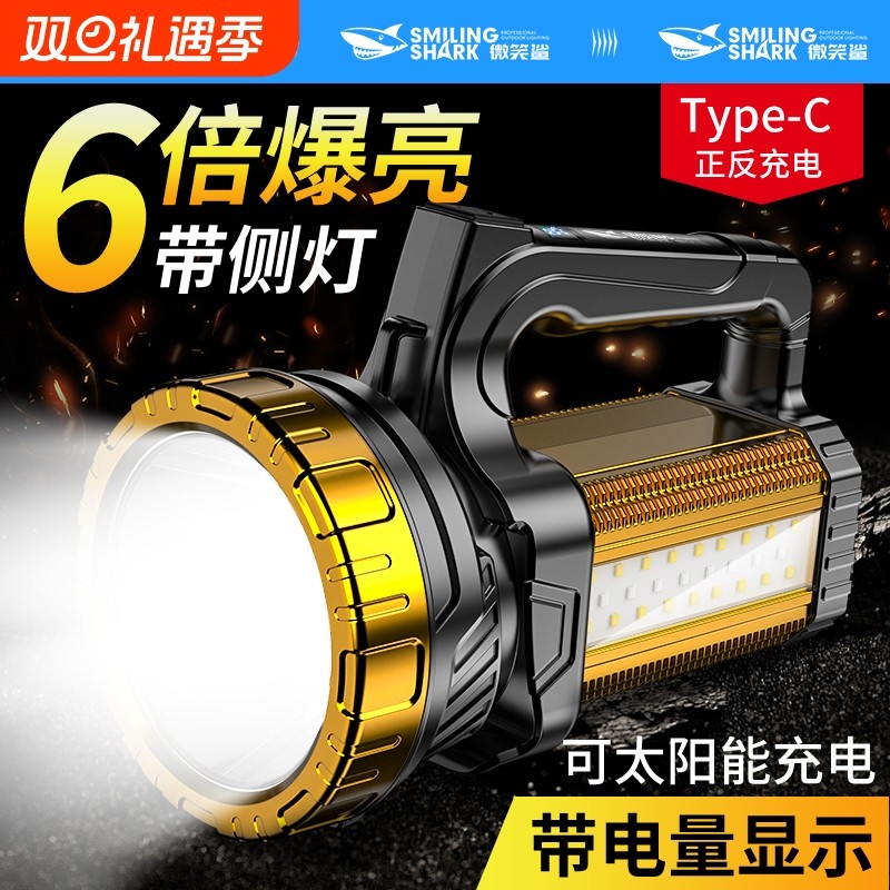 太阳能手电筒强光充电户外超亮远射led氙气家用巡逻矿手提探照灯