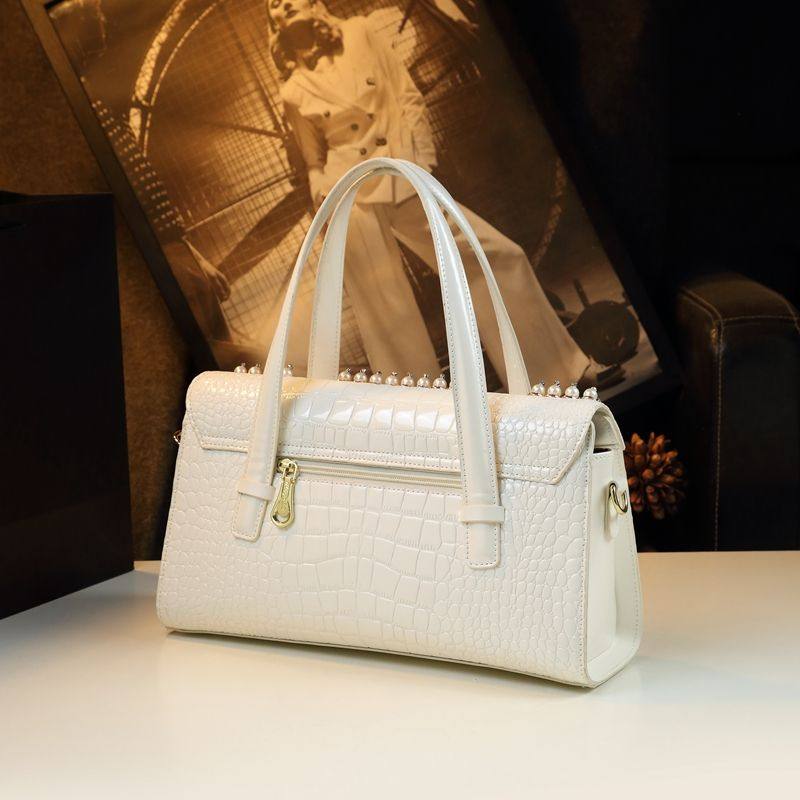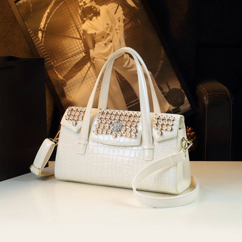 2025新款鳄鱼纹简约大气戴妃包中年妈妈包包真皮单肩斜挎包法棍包