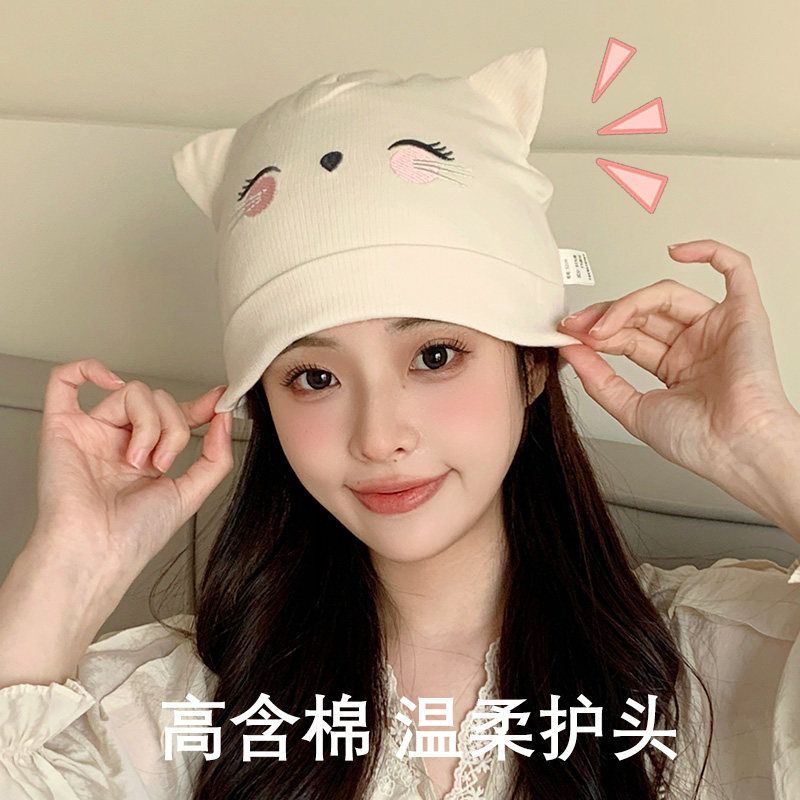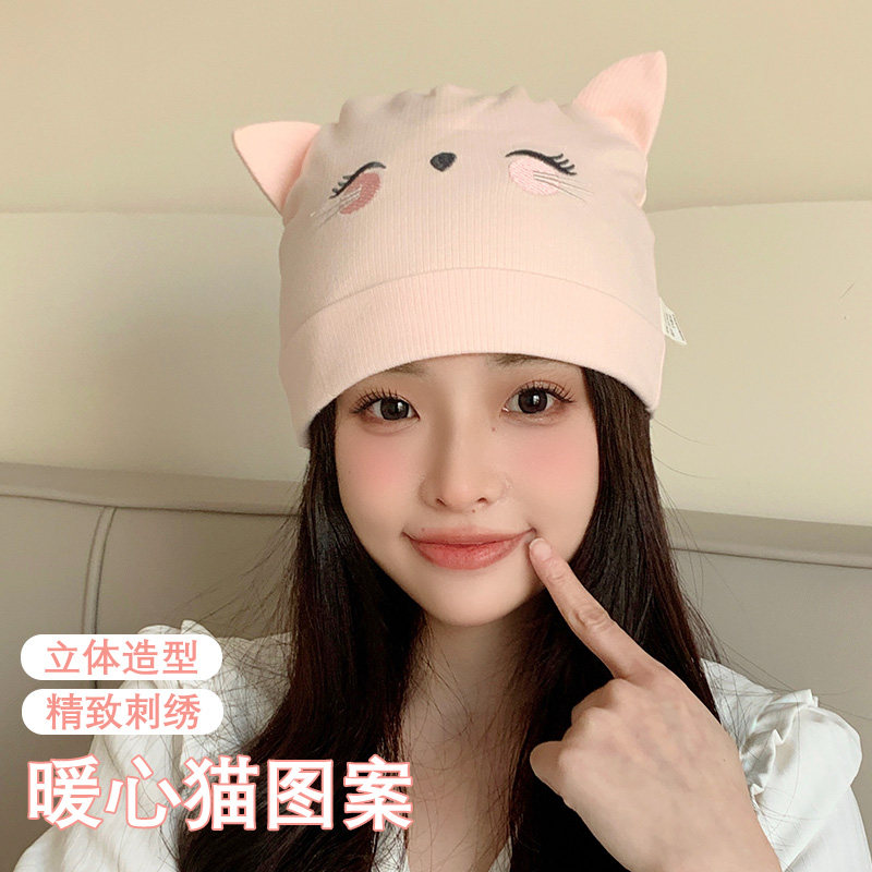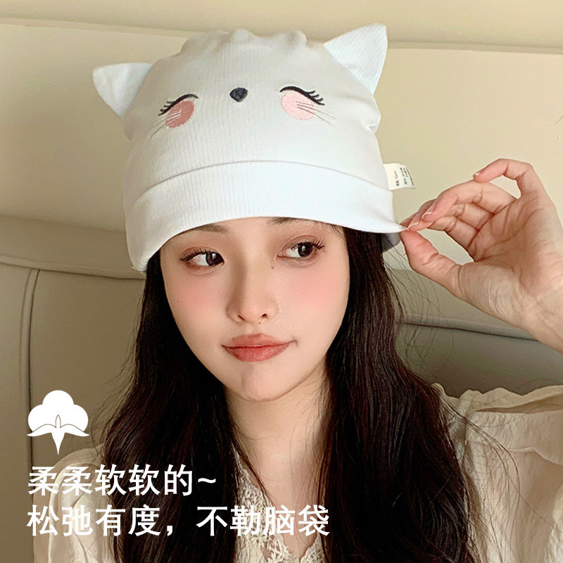 婧麒月子帽春秋款纯棉产妇帽防头风坐月子帽孕妇产后月子头巾发带