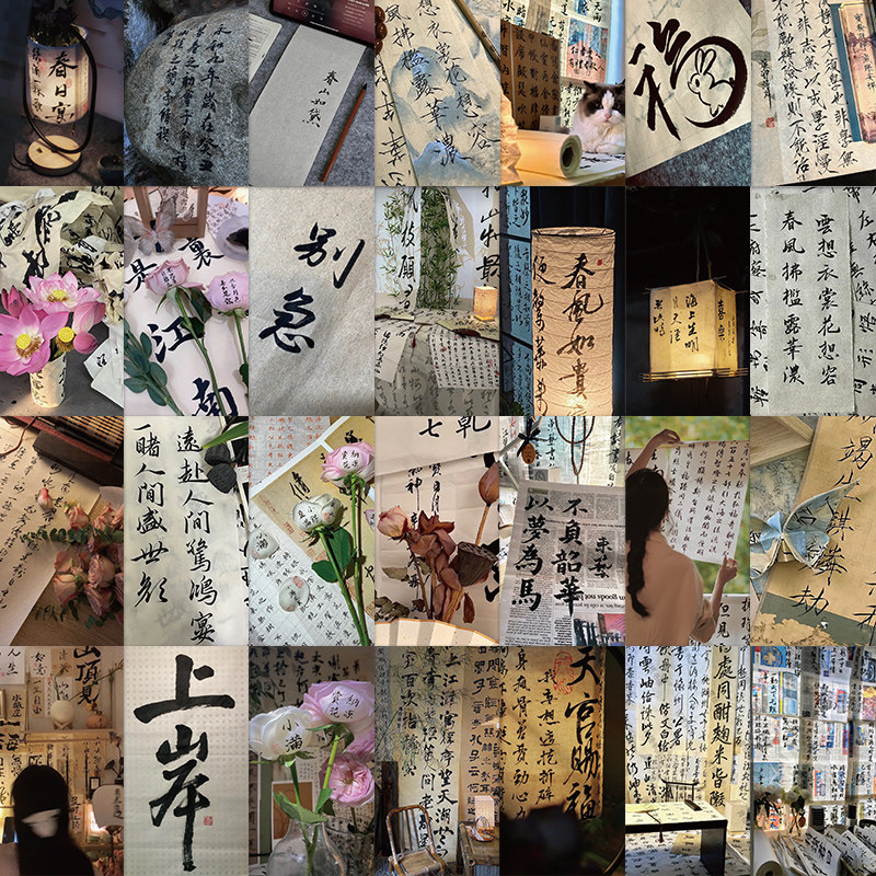 63张古风书法贴纸高颜值古诗词文字创意手帐diy手机电脑装饰贴画