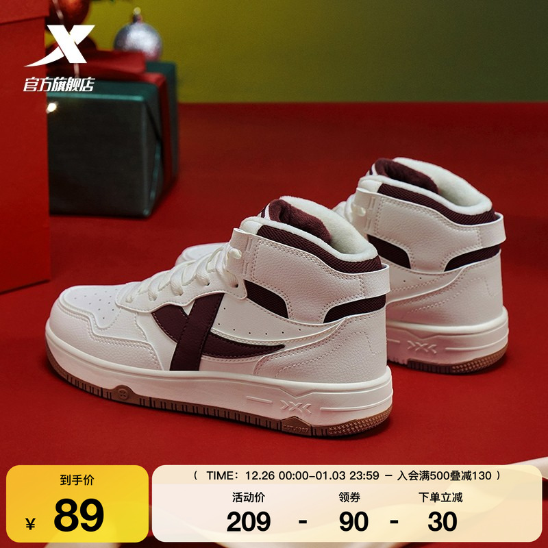 特步苜白3情侣板鞋|2025冬季新款高帮休闲鞋小白鞋女厚底增高鞋子
