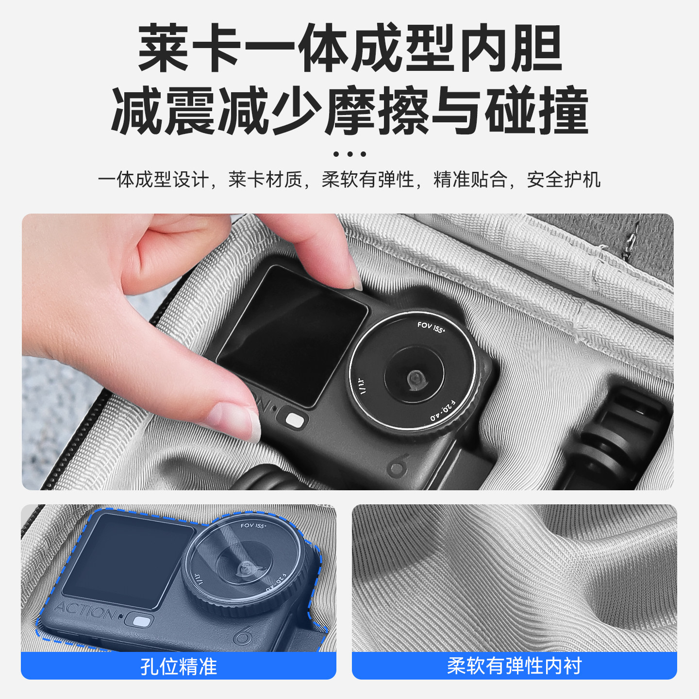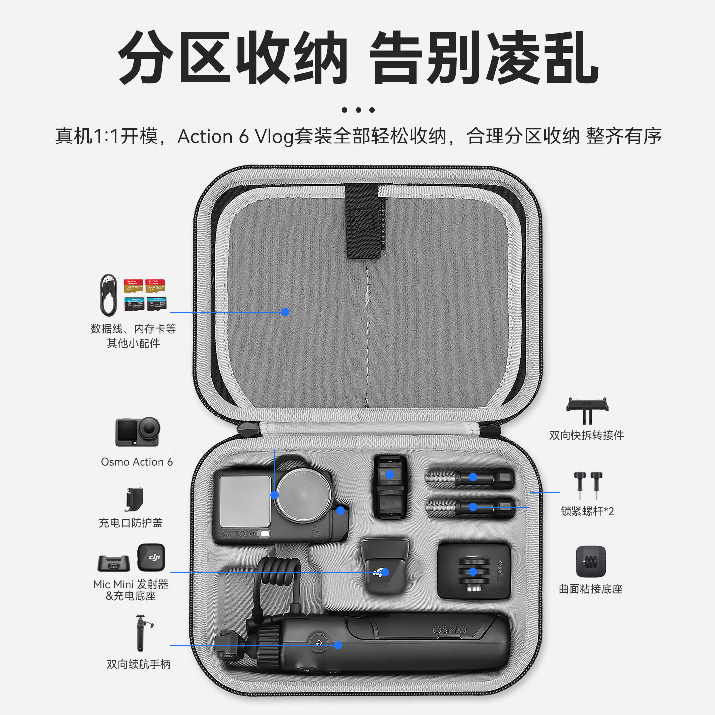XFJI适用DJI大疆action6全能Vlog套装收纳包手柄包便携osmo灵眸运动相机背包全能畅拍充电保护配件盒防摔箱