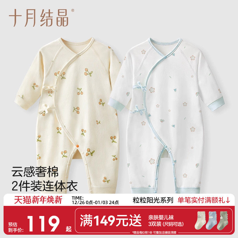 十月结晶婴儿衣服连体衣纯棉新生宝宝哈衣爬服2件装家居亲肤上衣