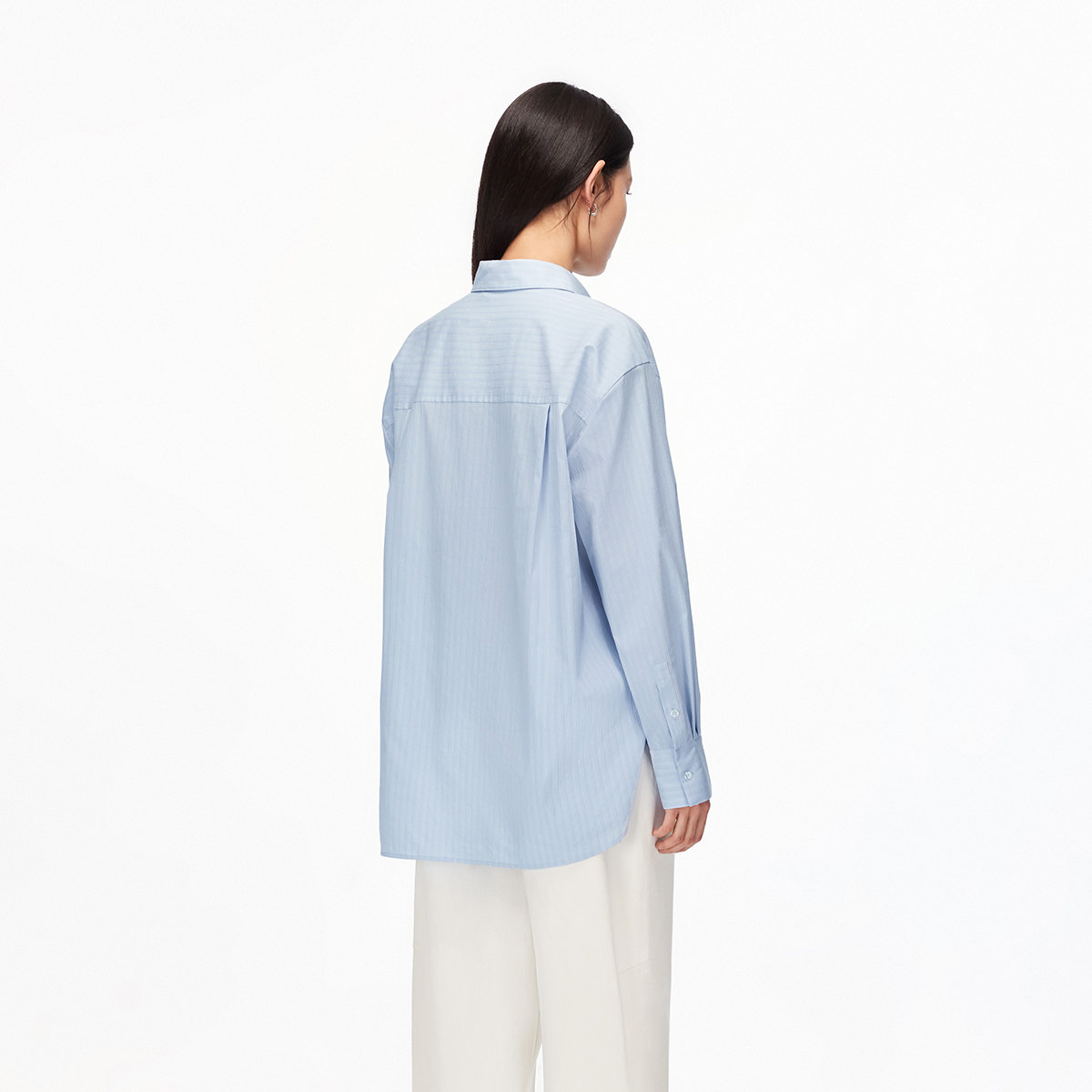 100棉|罗蒙春秋女士长袖衬衫竖条纹休闲百搭宽松衬衣女上衣外套