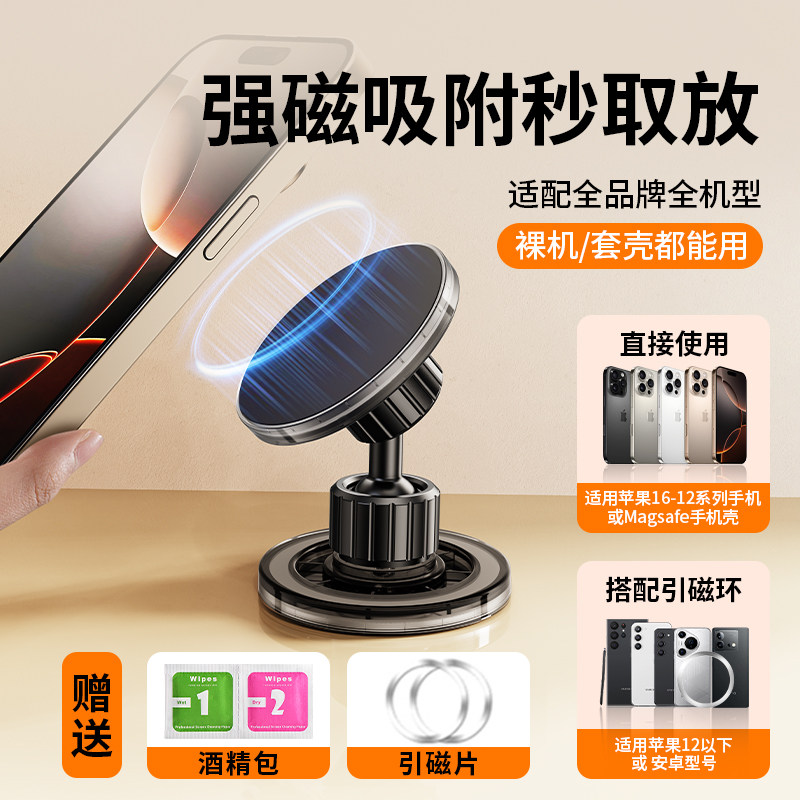 真空吸附磁吸车载手机支架2025新款吸盘车内导航手机架magsafe无线磁吸伸缩折叠便携架子墙壁通用神器