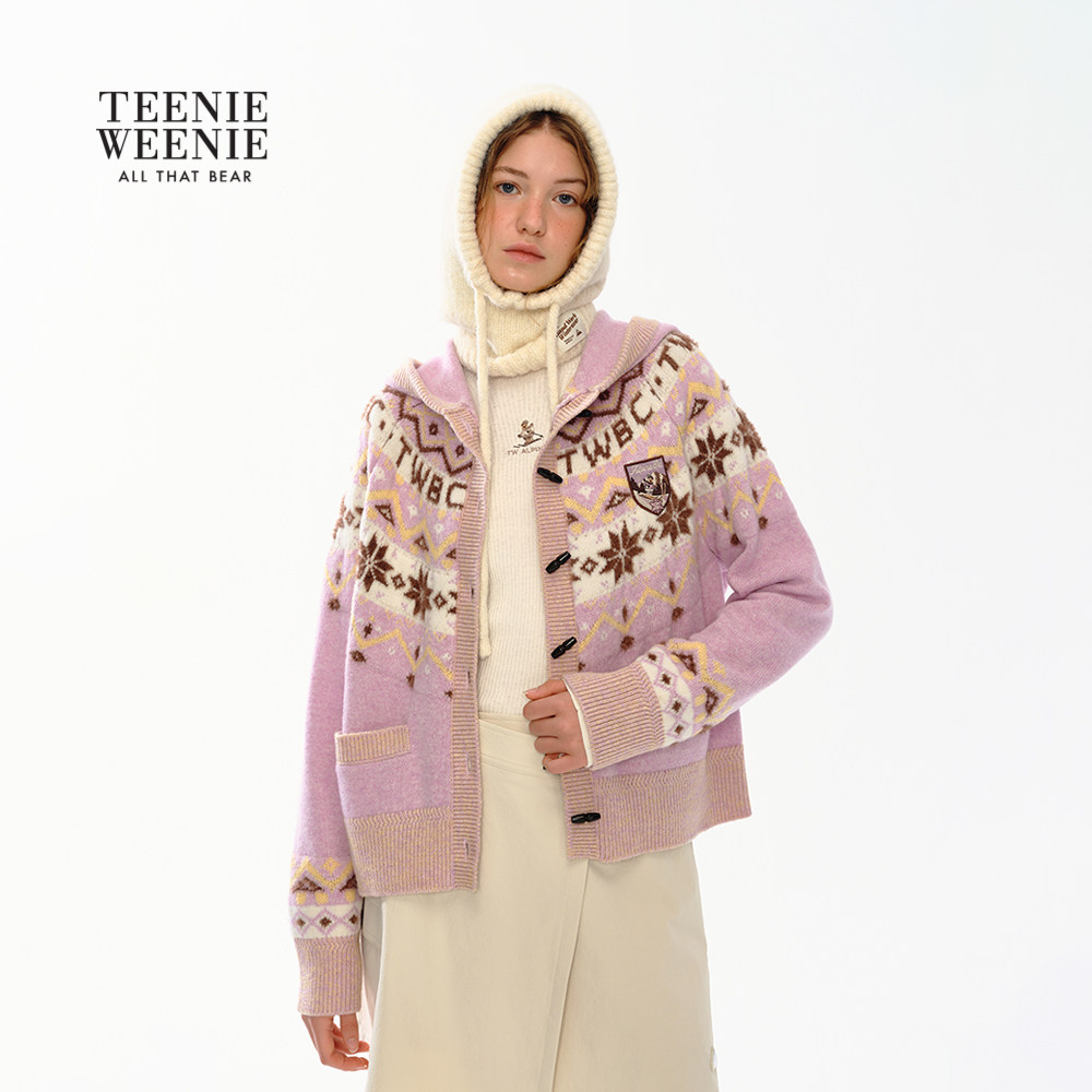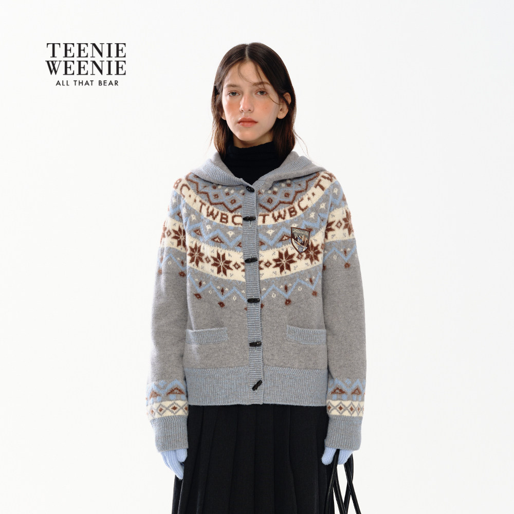 TeenieWeenie小熊女装毛针织衫2025年冬季新款费尔岛提花连帽毛衣