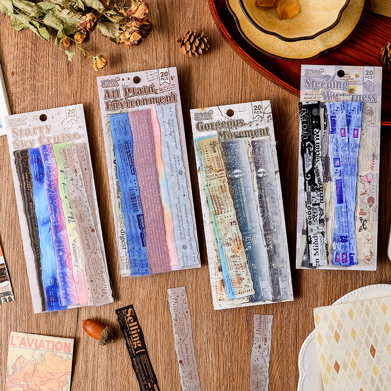 悦真风简影诗年复古贴纸手帐素材长条英文乐普diy 装饰贴画贴纸