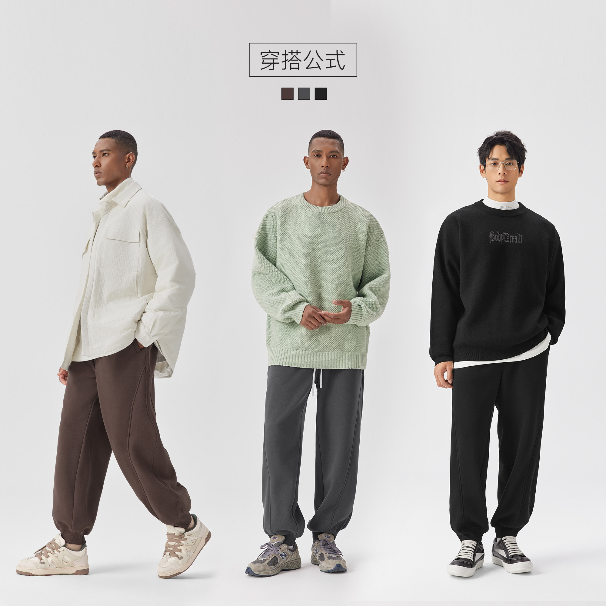 BODYDREAM冬季重磅加绒卫裤男士运动裤宽松大码束脚裤针织休闲裤