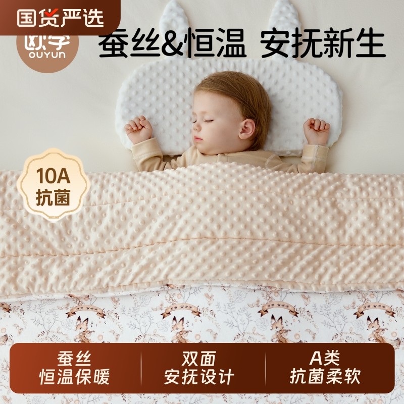 贝肽斯蚕丝豆豆毯新生婴儿盖毯宝宝专用秋冬推车绒毛毯儿童小被子