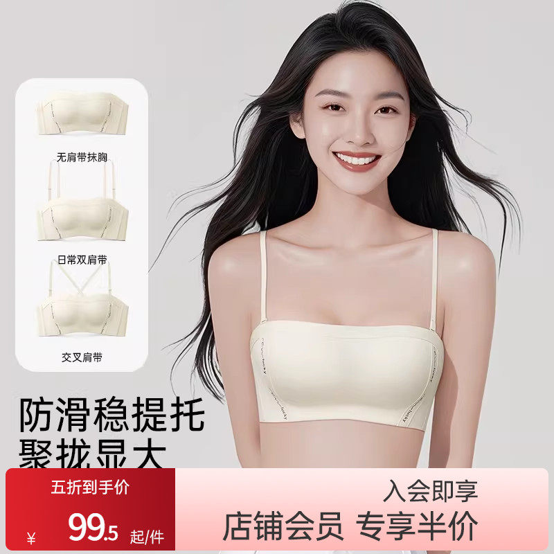 曲线主义小方杯无肩带内衣女防滑聚拢可外穿抹胸小胸不掉裹胸文胸