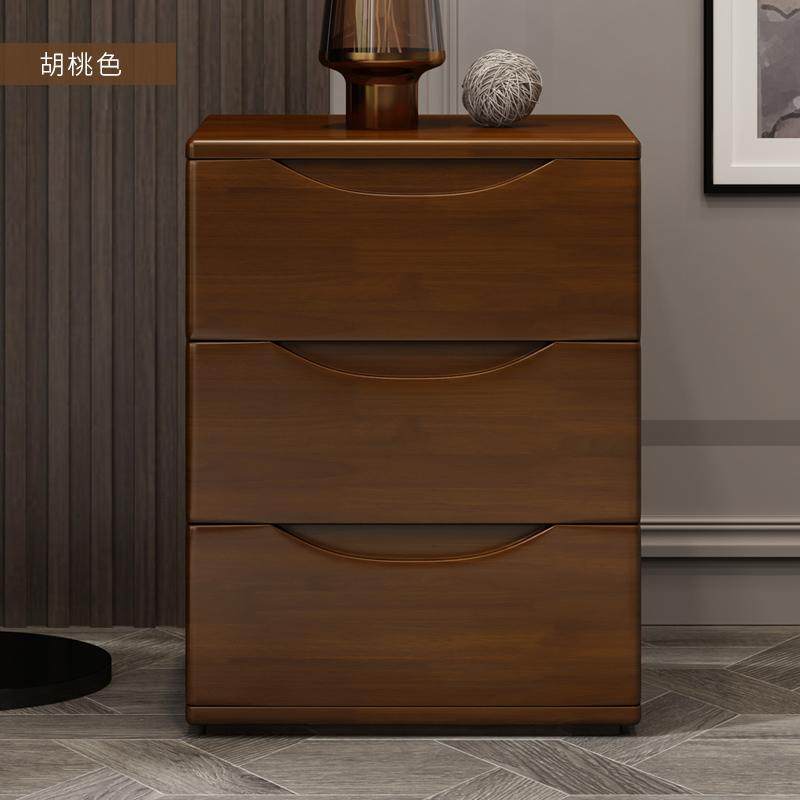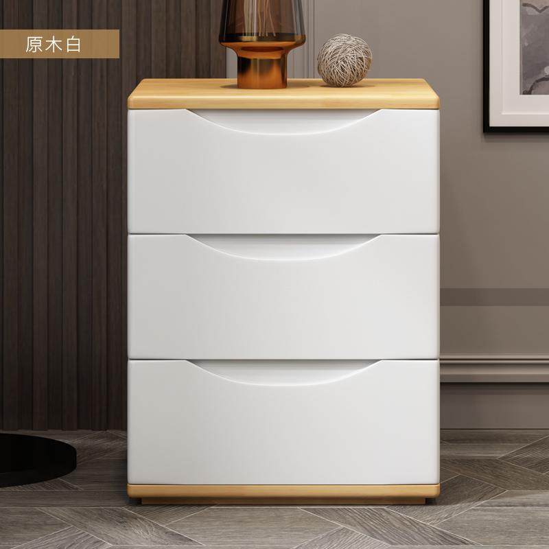 床头柜全实木三斗白色胡桃木色简约现代迷你小型卧室储物床边柜子