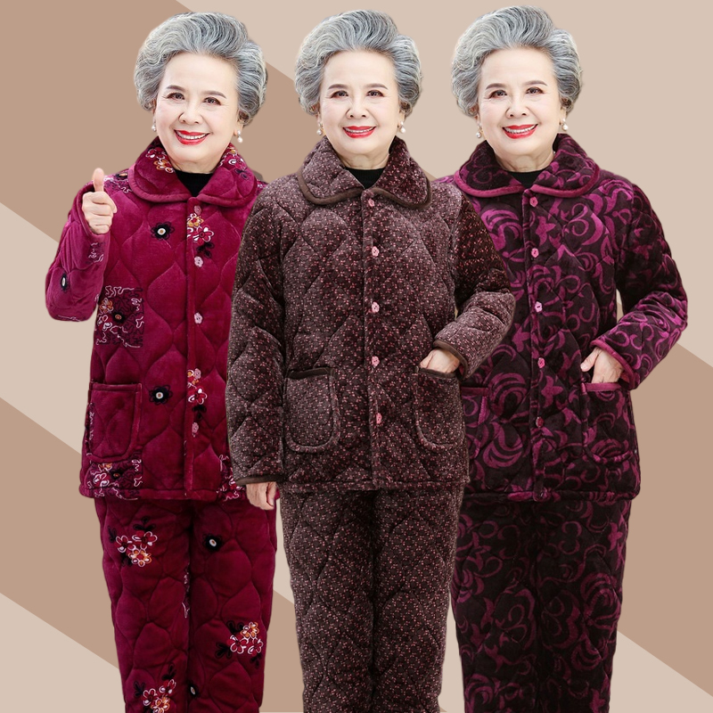 奶奶冬装睡衣套装女中老年人加厚保暖妈妈居家服两件套新款厚款