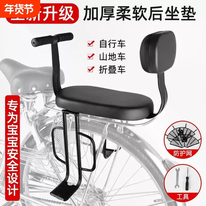 自行车后座儿童座椅山地车架后座垫单车电动车载人宝宝椅超软通用
