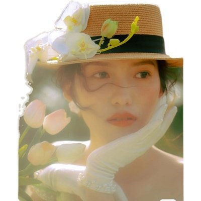 新款粘花礼帽 装饰太阳帽外景森系拍照道具女士平沿防晒法式草帽