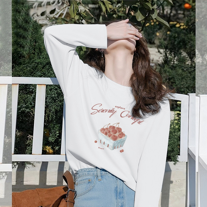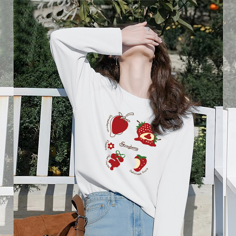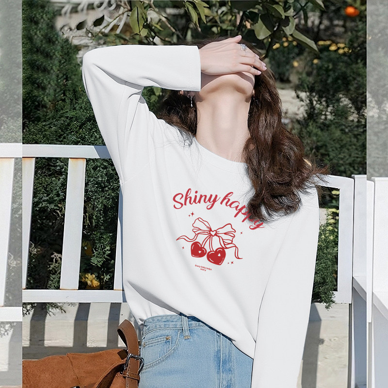 三福长袖上衣女2025新款秋冬季圆领内搭打底衫修身白色t恤女装