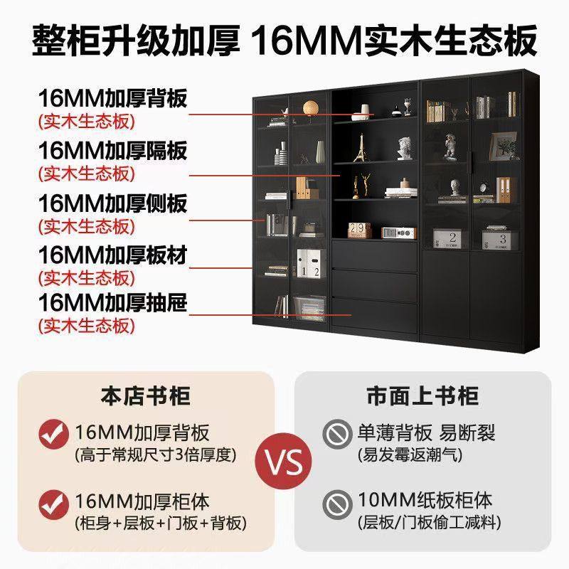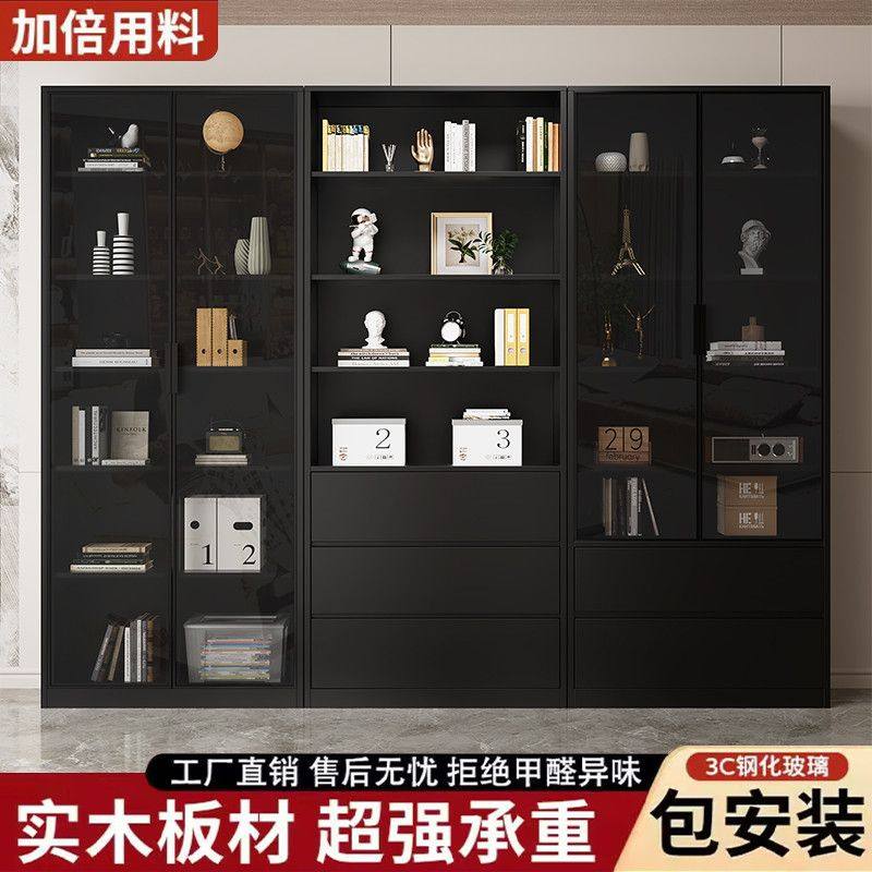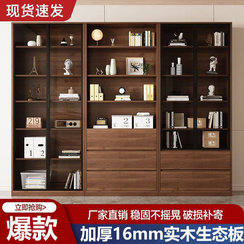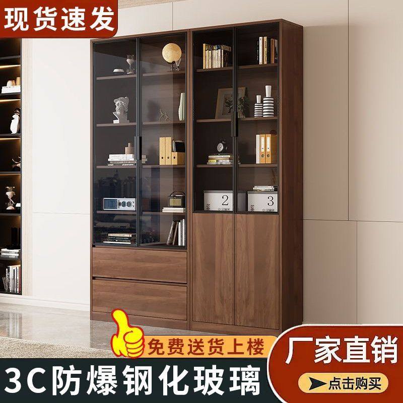 实木书柜储物柜一体靠墙家用客厅酒柜置物架玻璃门整墙落地展示柜