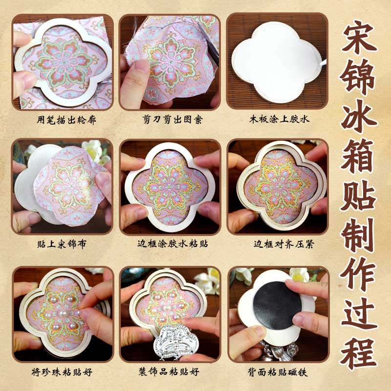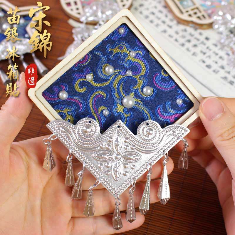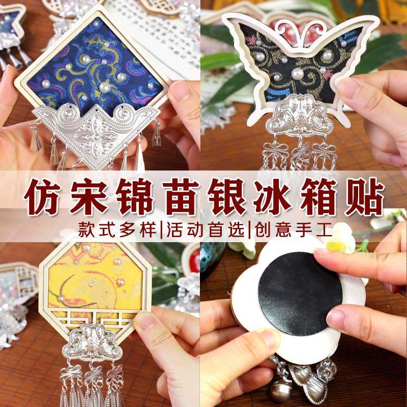 宋锦苗银冰箱贴磁吸中国风非遗手工diy配件材料包扎染中秋节创意