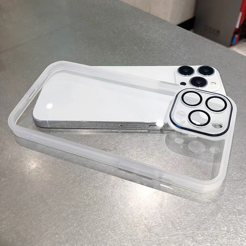 ins极简高级感自带镜头膜适用iPhone15pro苹果13手机壳14ProMax新款11透明12网红17男女16plus硅胶全包防摔套