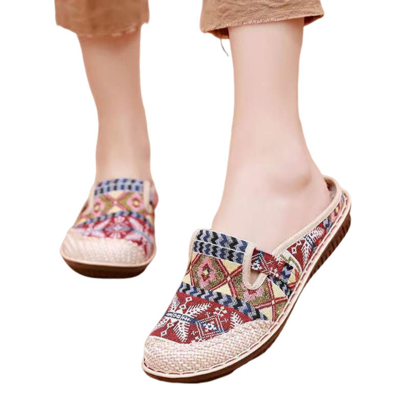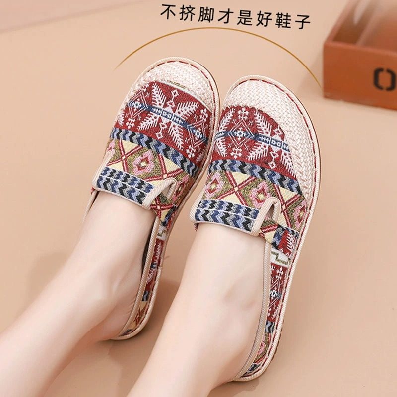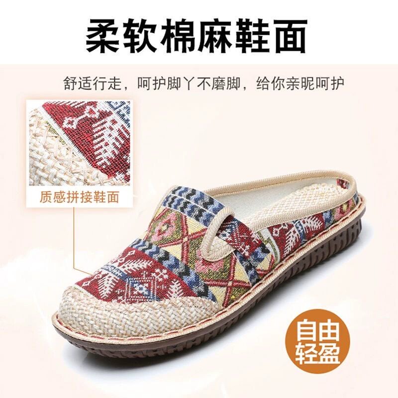 老北京布鞋女夏季包头半拖鞋亚麻凉拖鞋外穿软底妈妈鞋平底鞋子