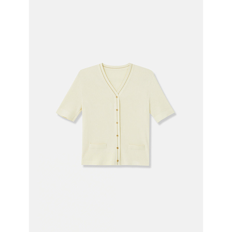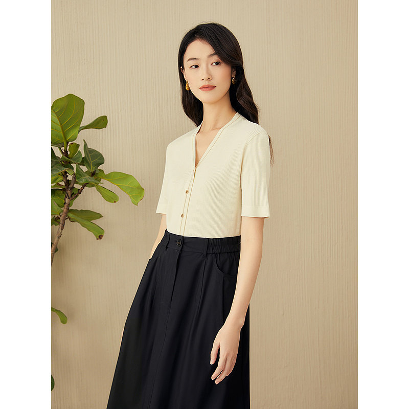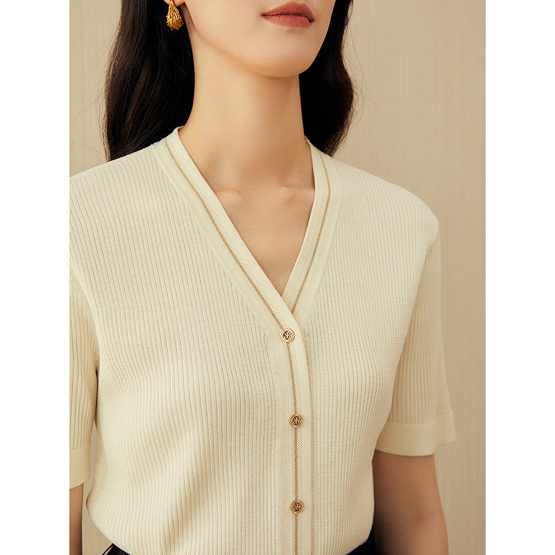 【真丝系列】YINER音儿2025夏季新款桑蚕丝混纺亮丝V领针织衫