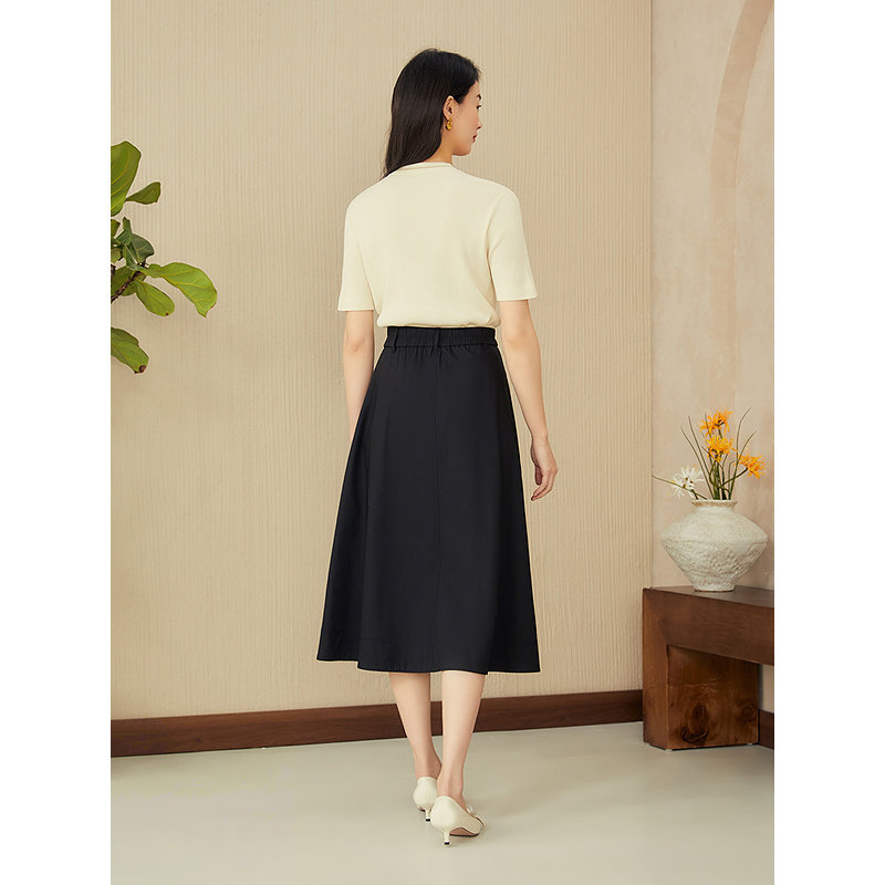 三福长袖上衣2025新款秋季圆领修身针织衫简约纯色内搭打底衫女装