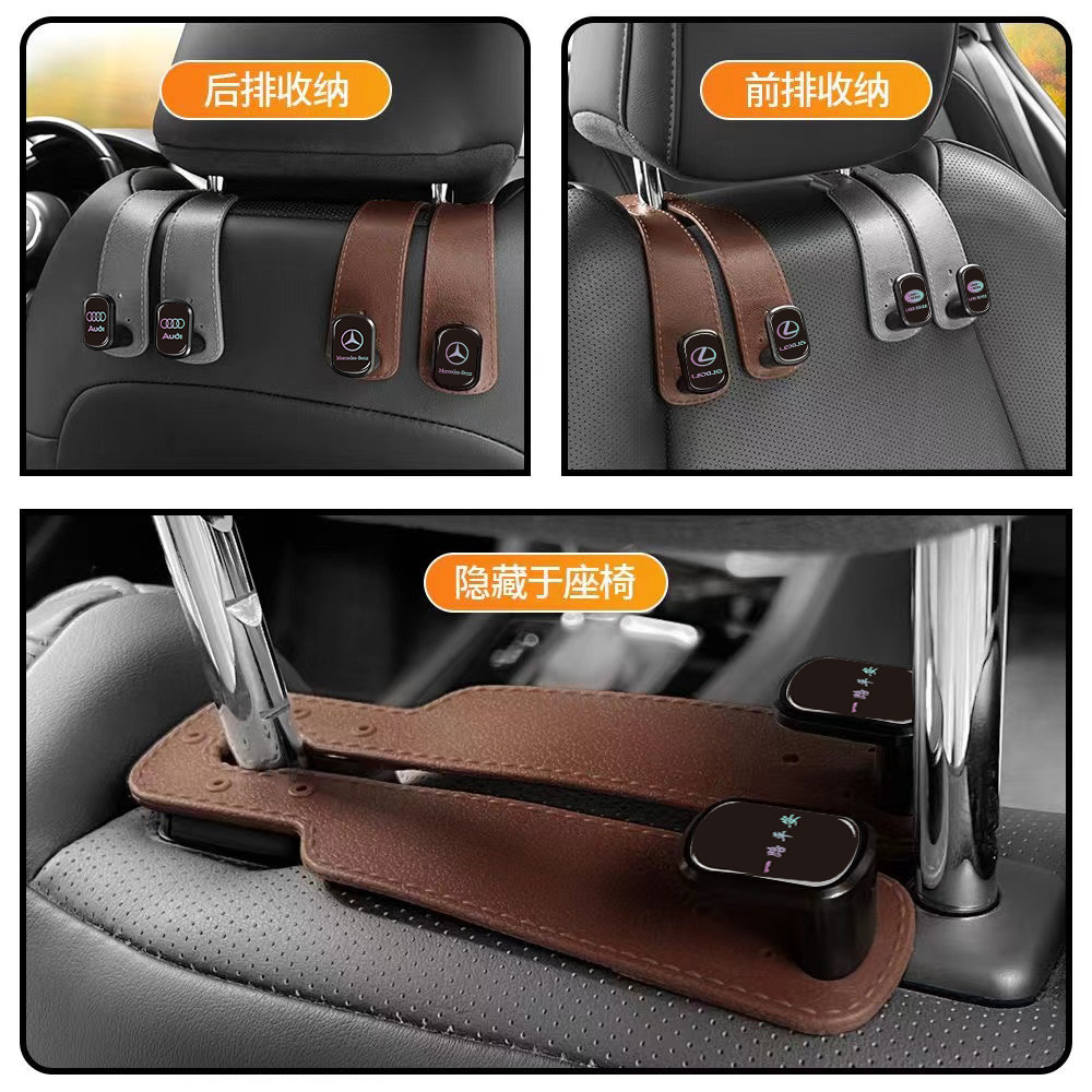 汽车挂钩车载座椅背升级隐藏双挂钩翻毛皮后排车内用包包储物挂钩