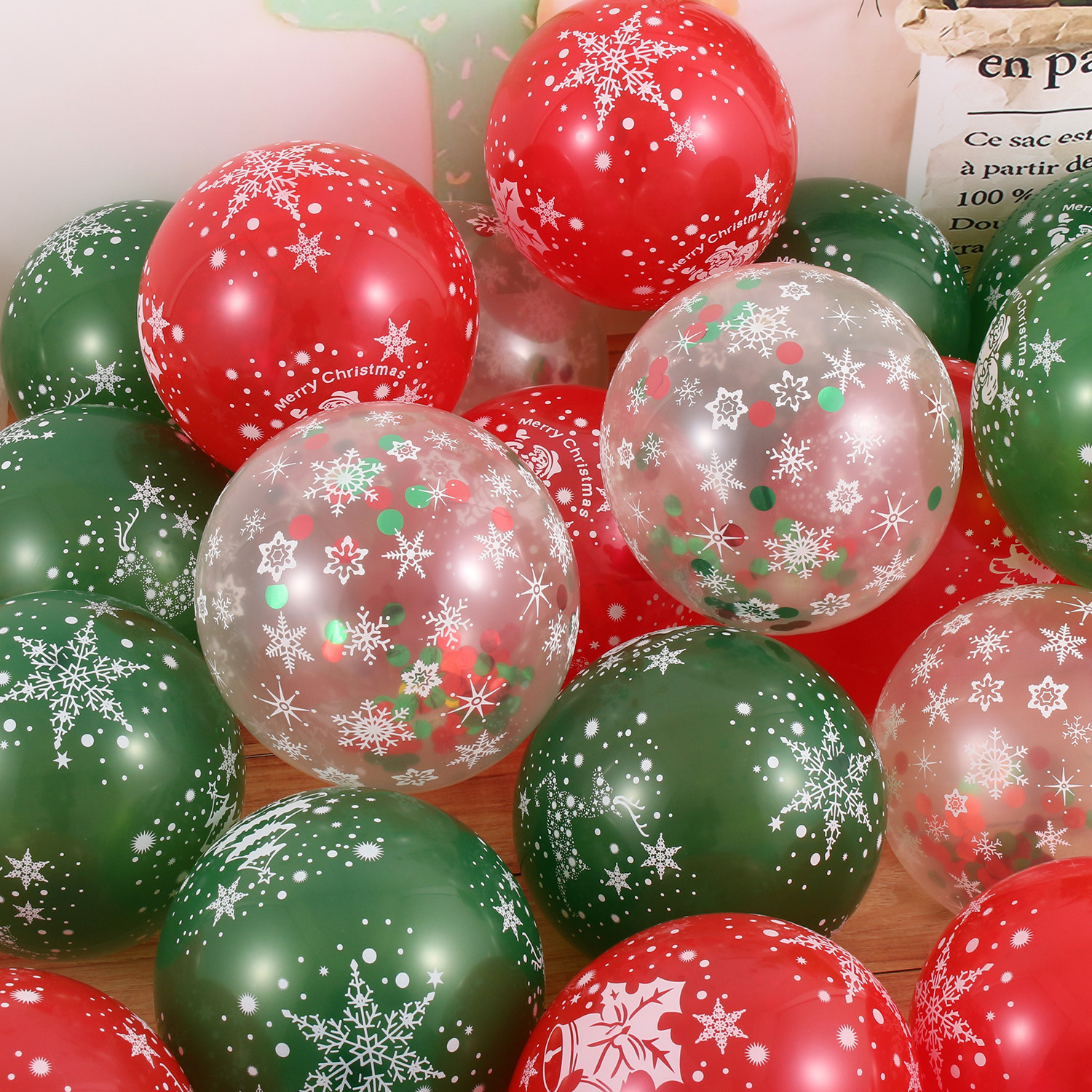 圣诞节气球装饰品雪花亮片商场门店教室酒吧活动场景布置红色乳胶