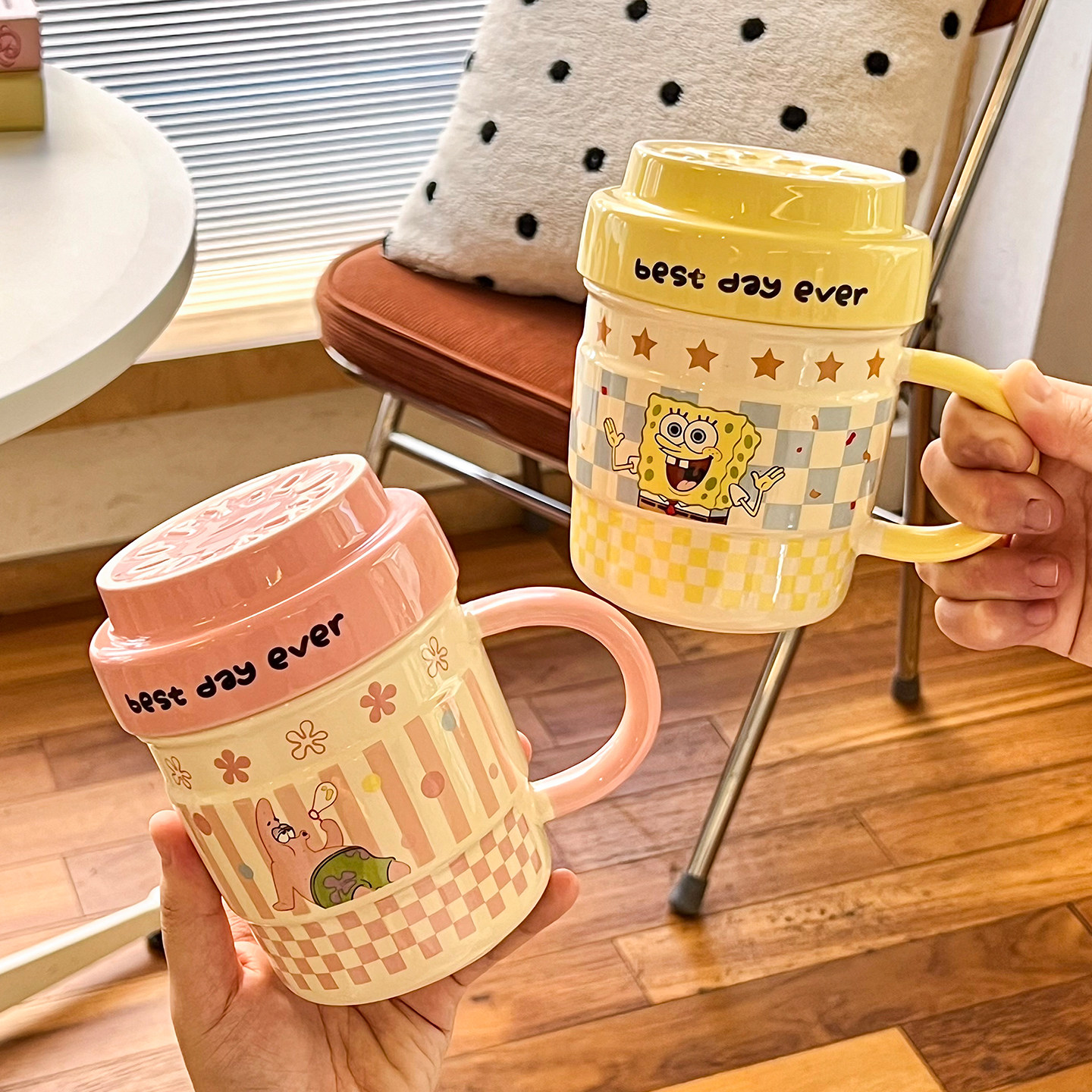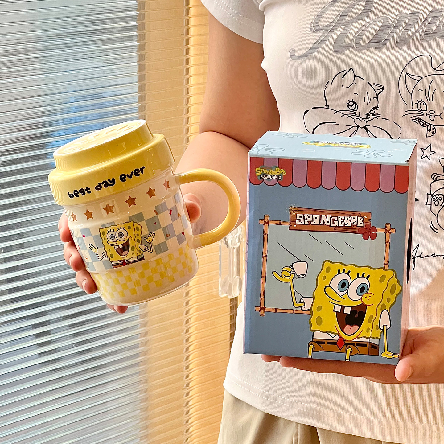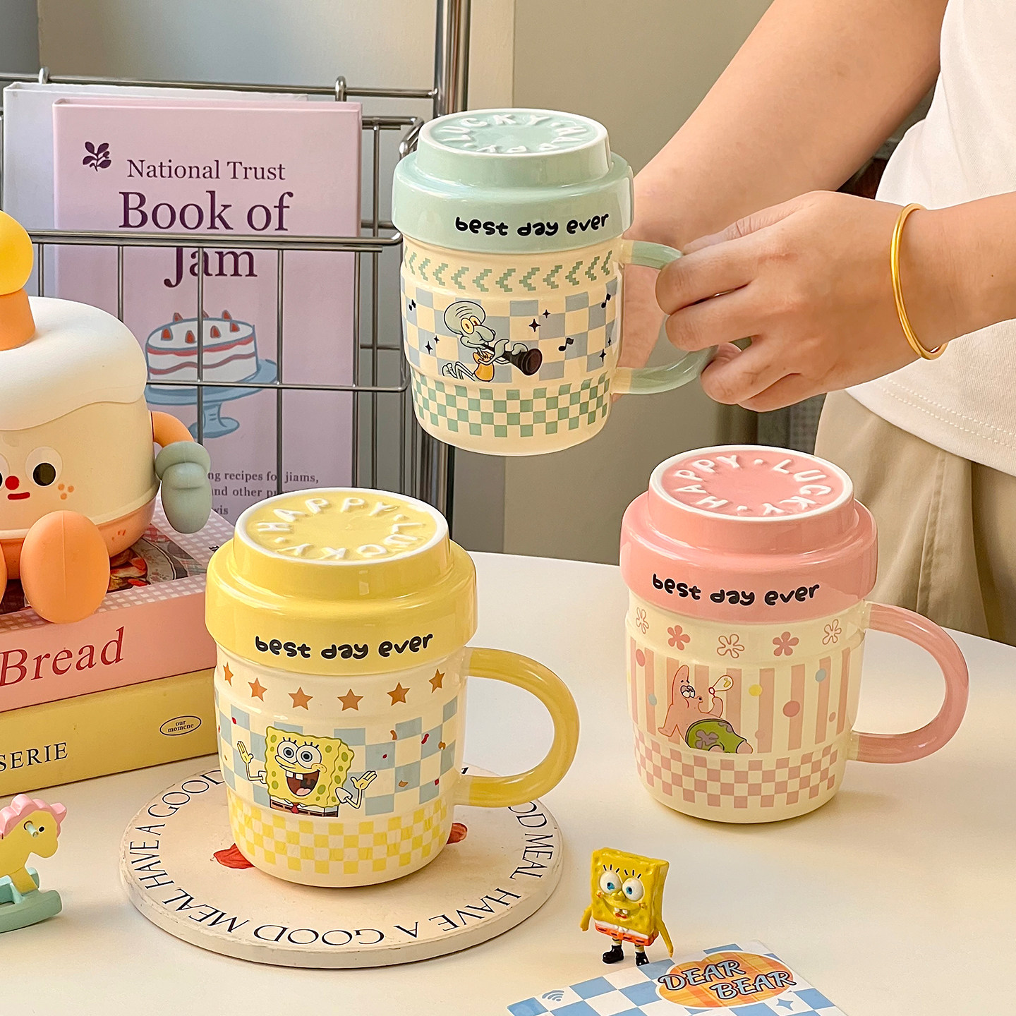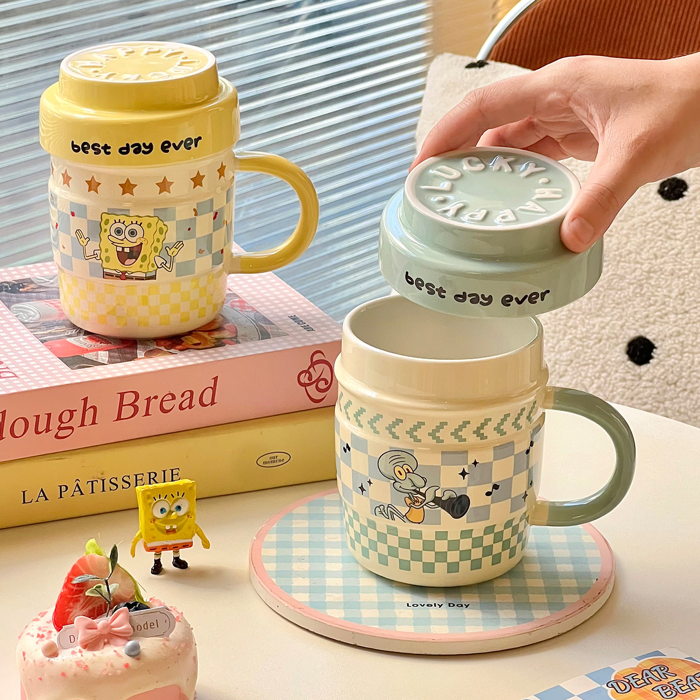 舍里海绵宝宝联名家用带盖陶瓷马克杯高颜值喝水杯咖啡杯情侣对杯