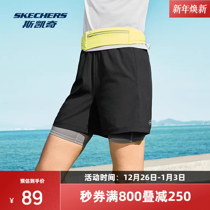 斯凯奇2025新品女子速干梭织运动短裤科技吸湿速干