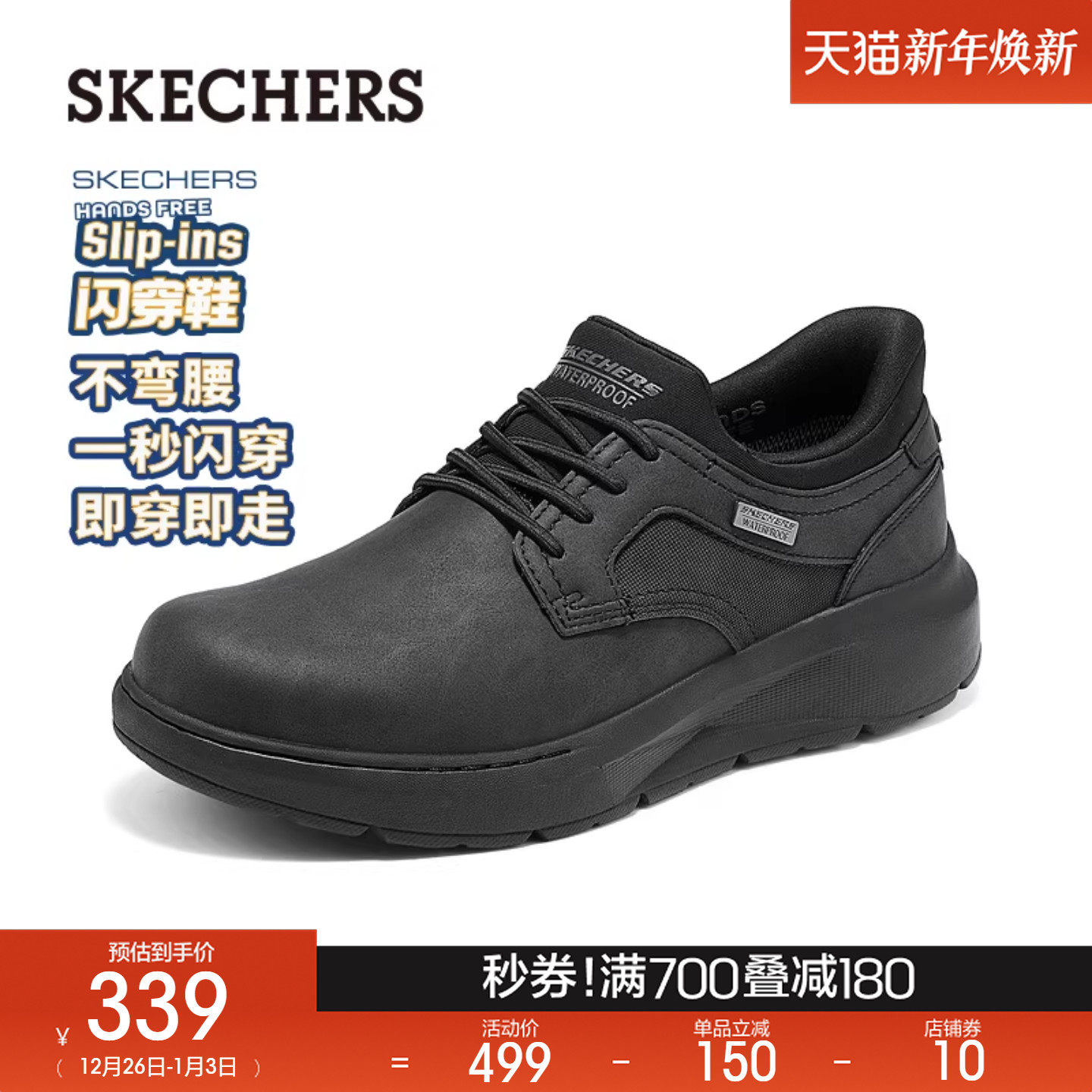 斯凯奇2025秋冬新款男子舒适休闲皮鞋时尚百搭商务鞋通勤鞋德比鞋