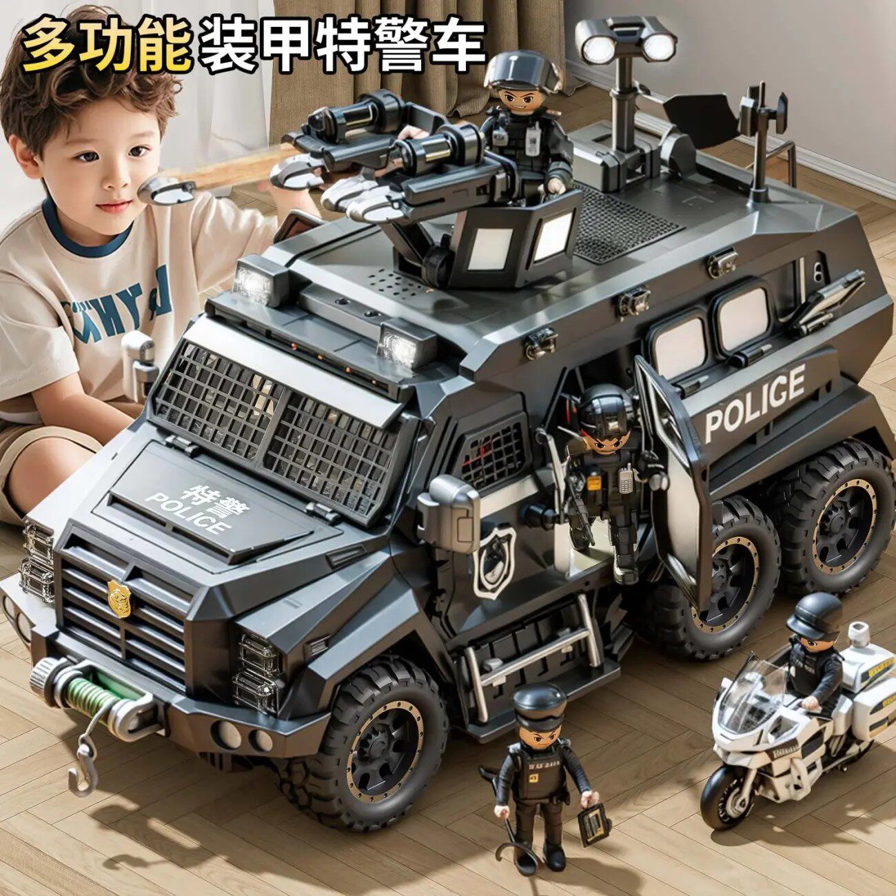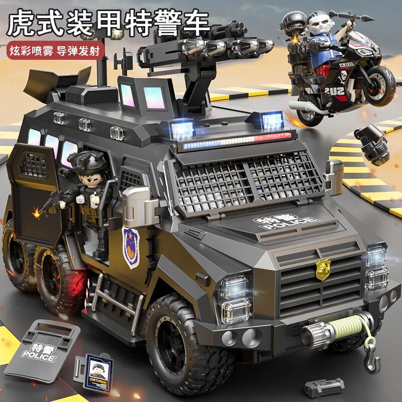 大号虎式装甲特警车玩具儿童可喷雾仿真警车导弹车模型男孩礼物