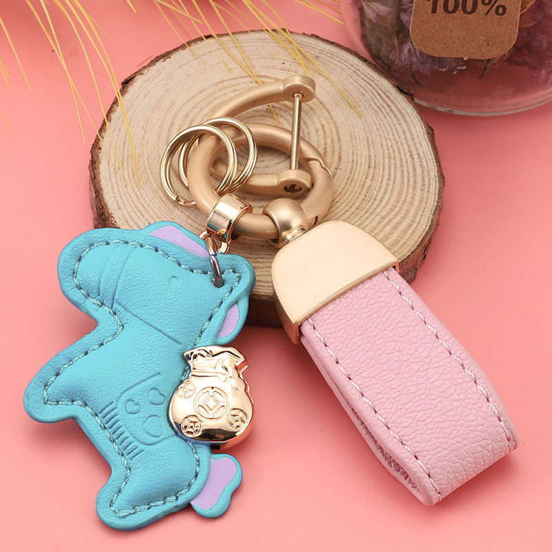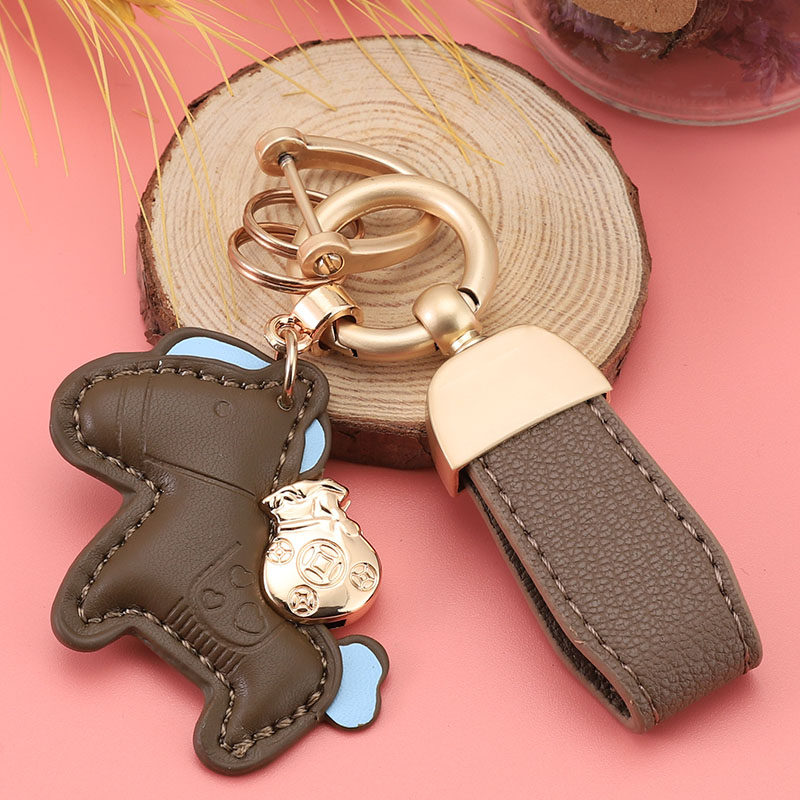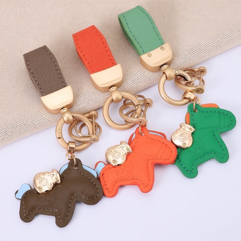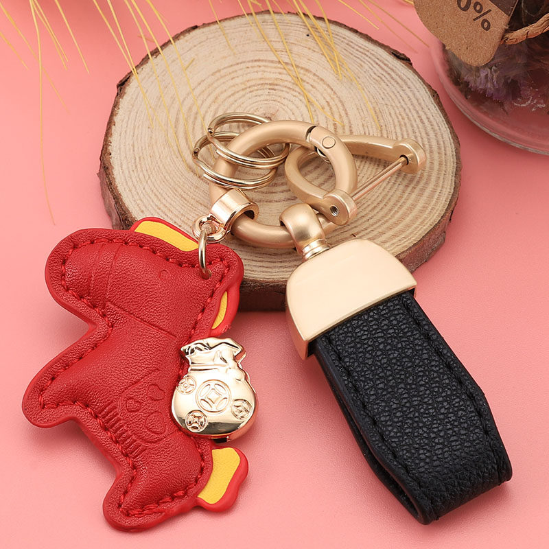 卡通马上有钱钥匙扣创意汽车钥匙链圈皮革手工编织绳书包挂件礼物