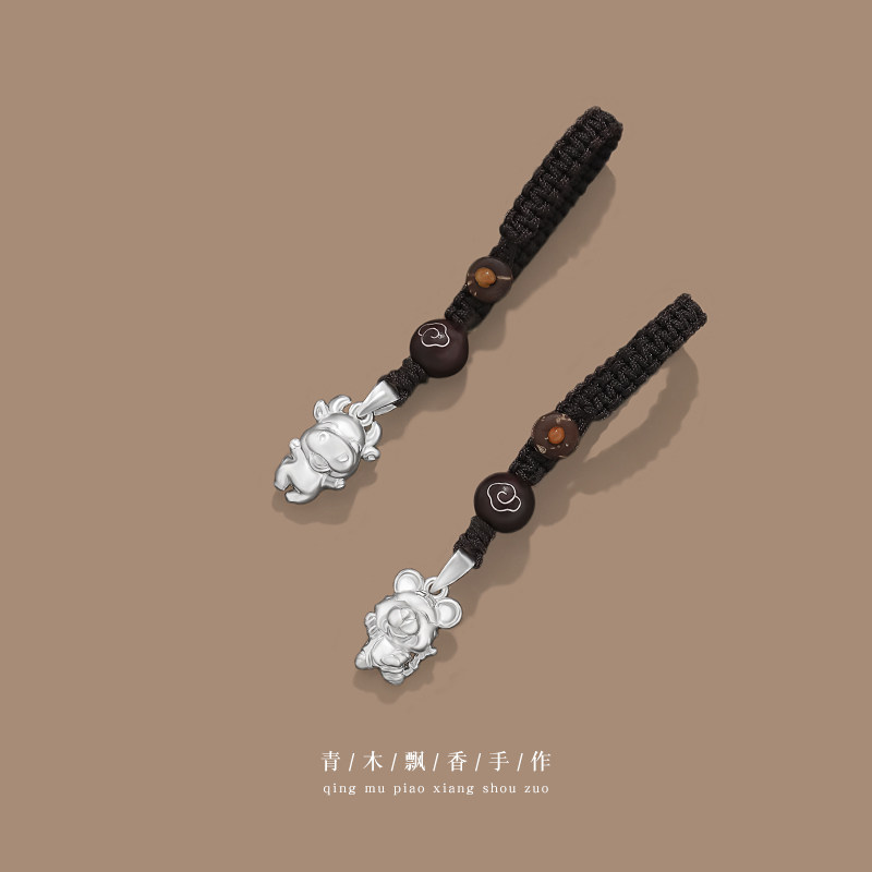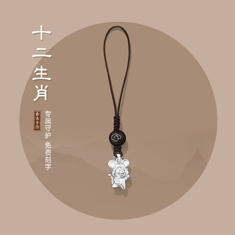 纯银生肖马年手机挂绳女款马上发财小吊坠钥匙扣手机挂件情侣挂饰