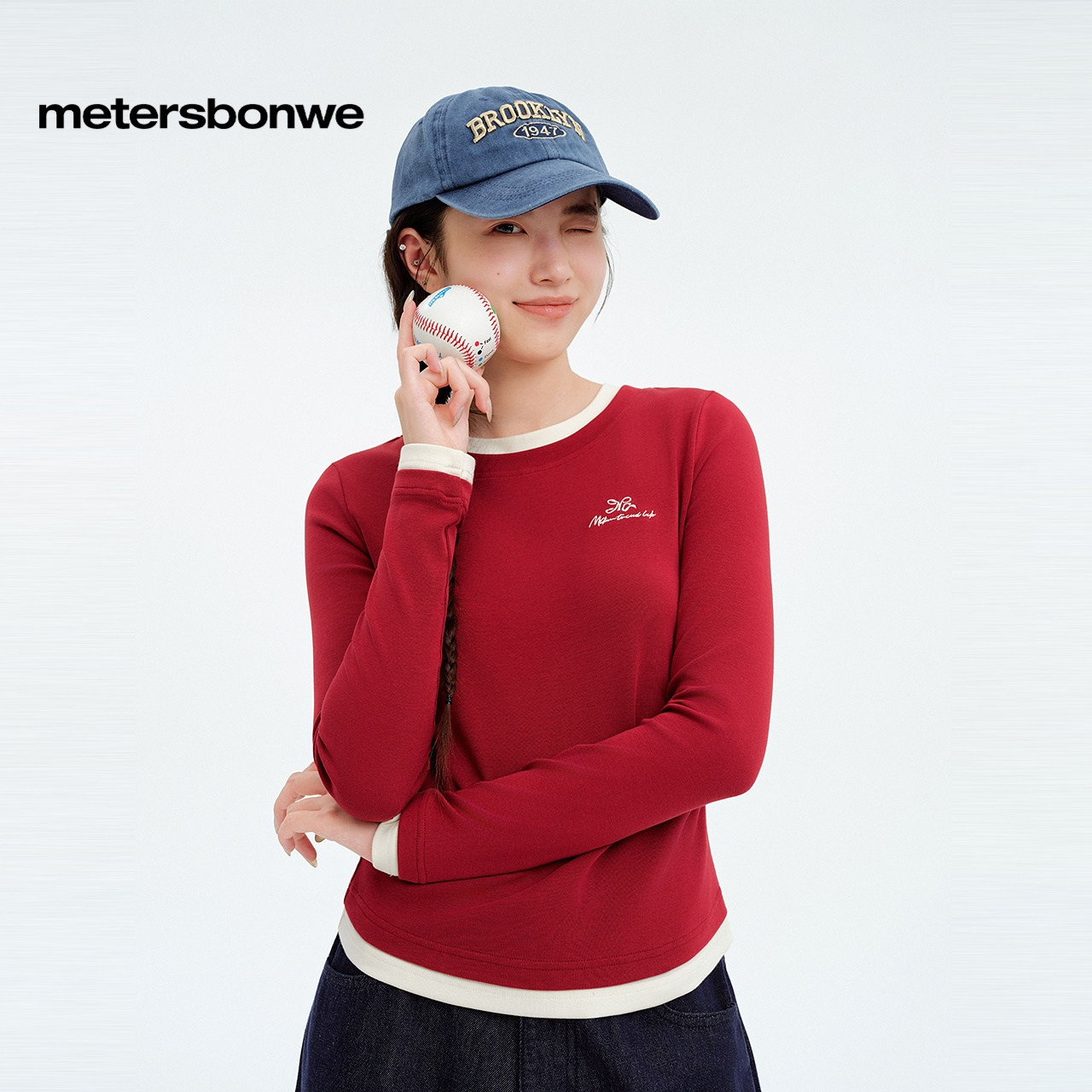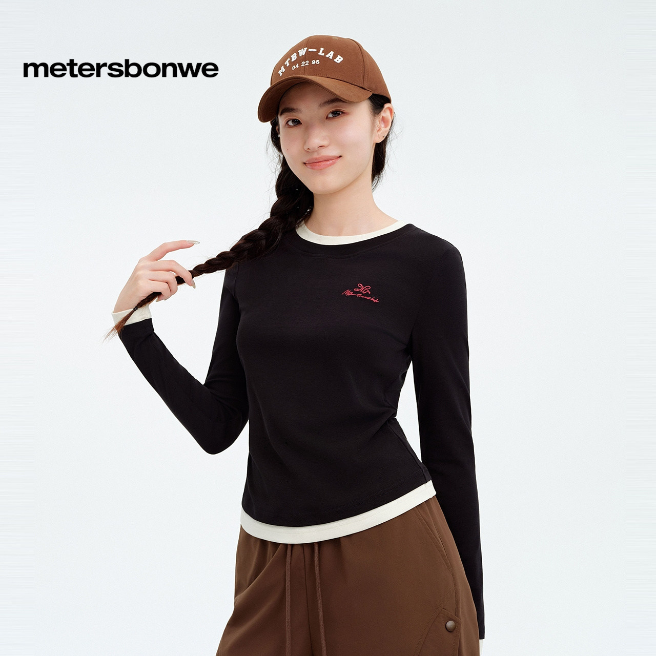 [商场同款]美特斯邦威女25秋冬新款修身假两件针织长袖T恤打底衫