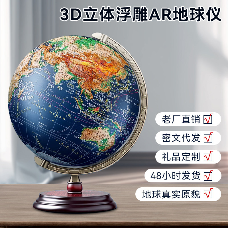 天屿新款浮雕点读发光地球仪3D立体凹凸智能AR32cm大号带灯高档礼品摆件