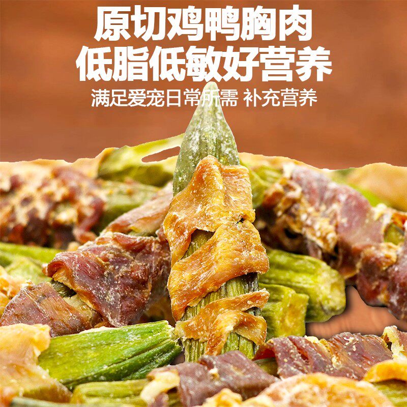 狗狗零食鸭肉干绕秋葵宠物零食大小型犬磨牙棒幼犬训狗奖励狗零食