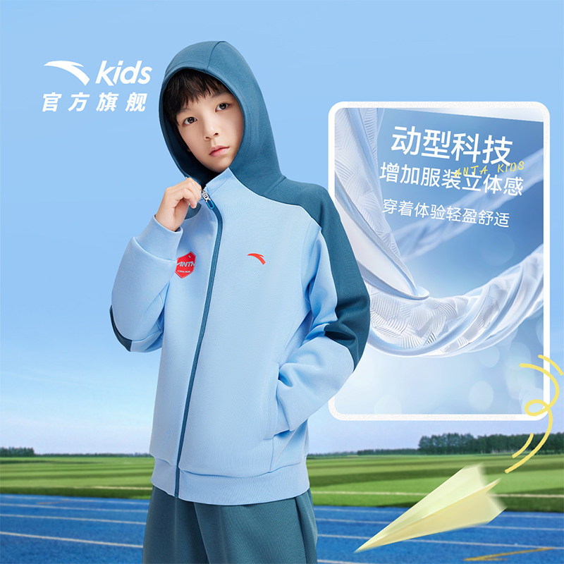 安踏儿童套装男童加绒套装新年外套裤子两件套保暖时尚运动套装冬