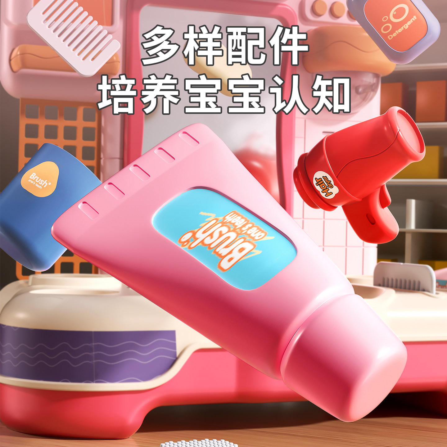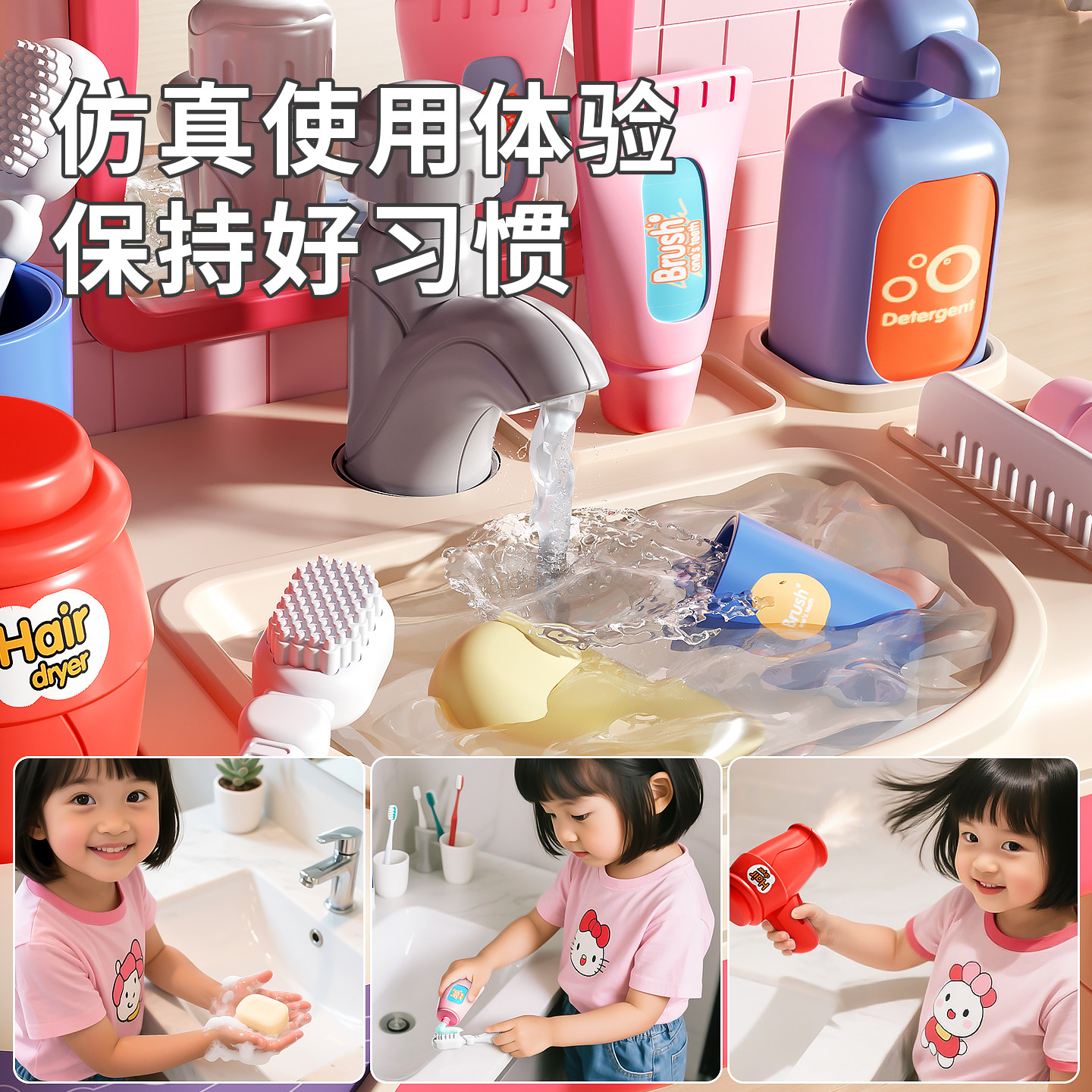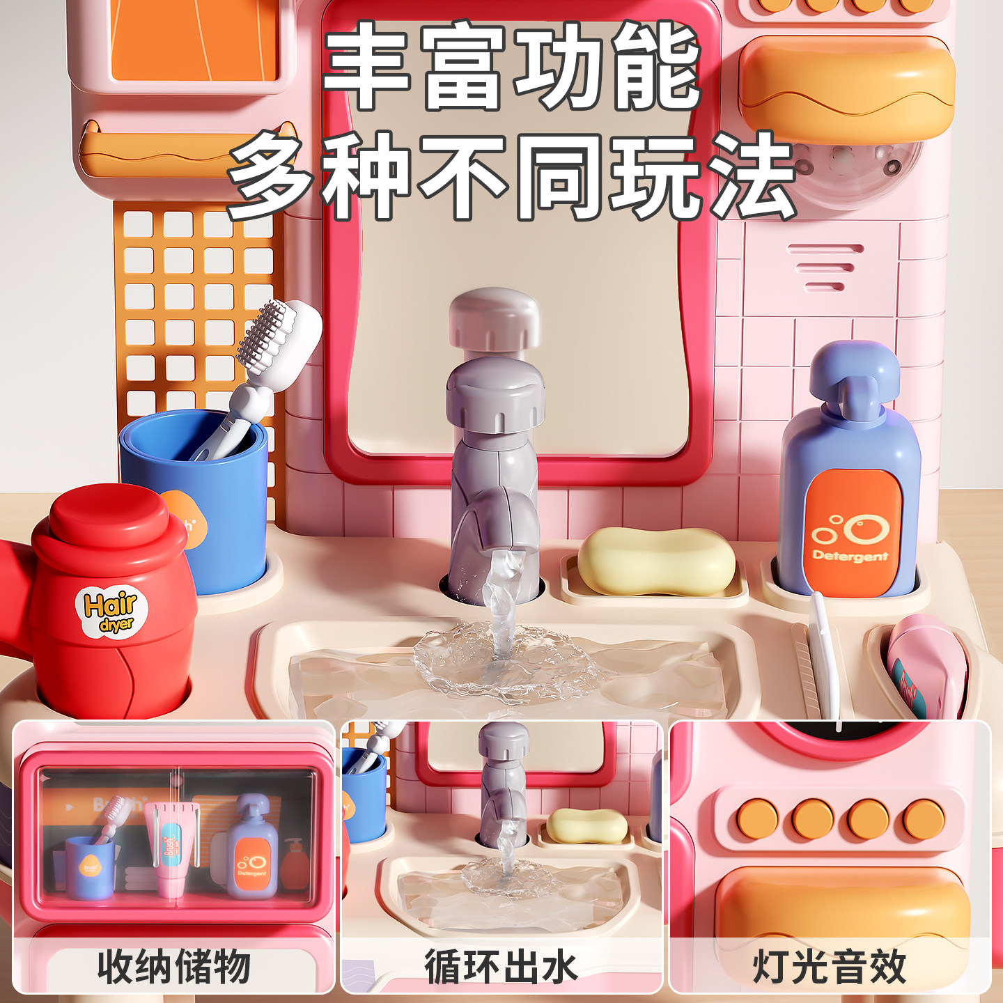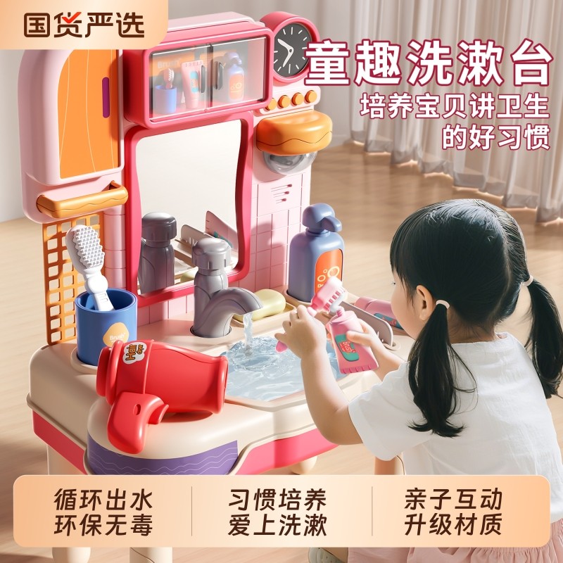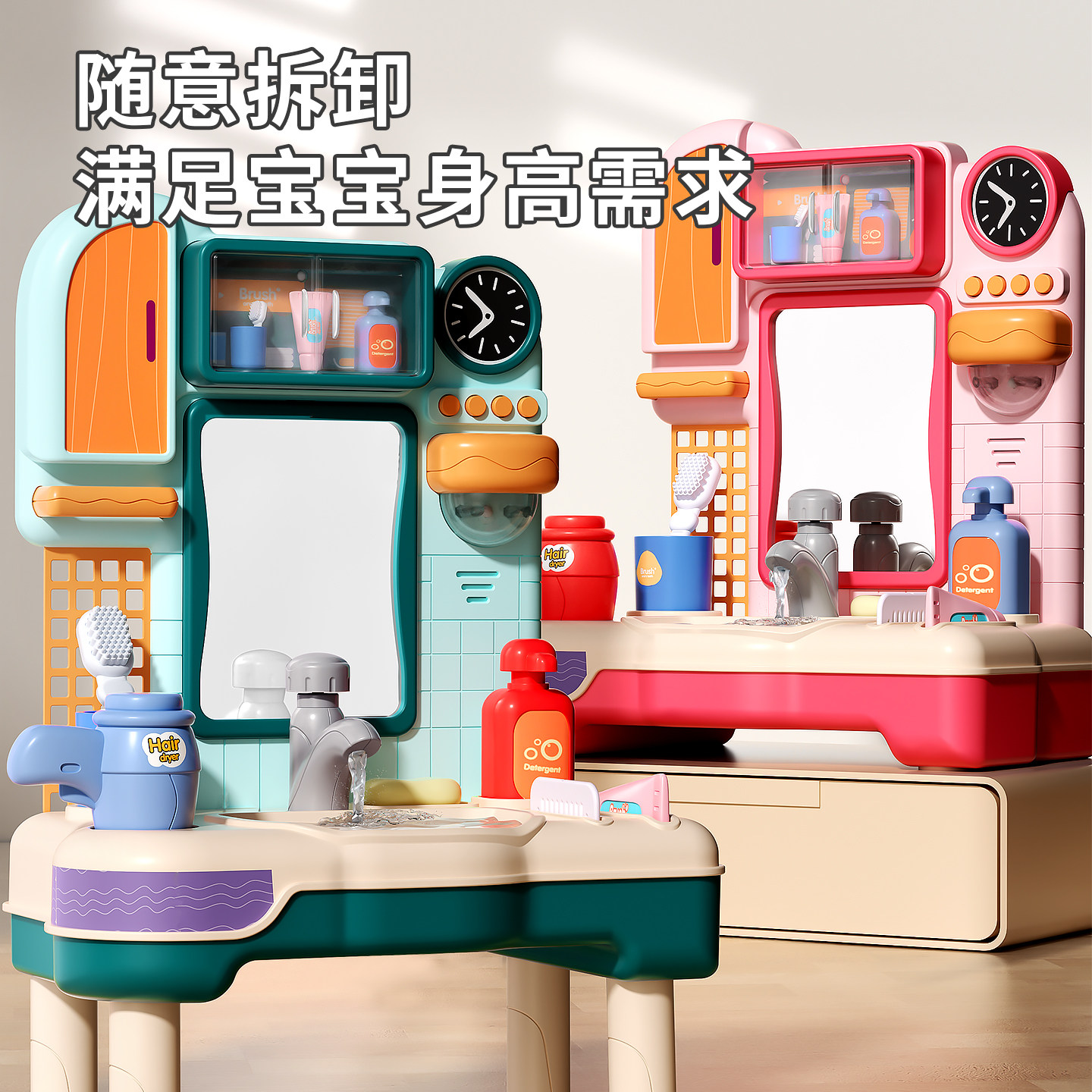 儿童仿真洗漱台厨房玩具套装过家家女童梳妆台化妆台洗手台可出水