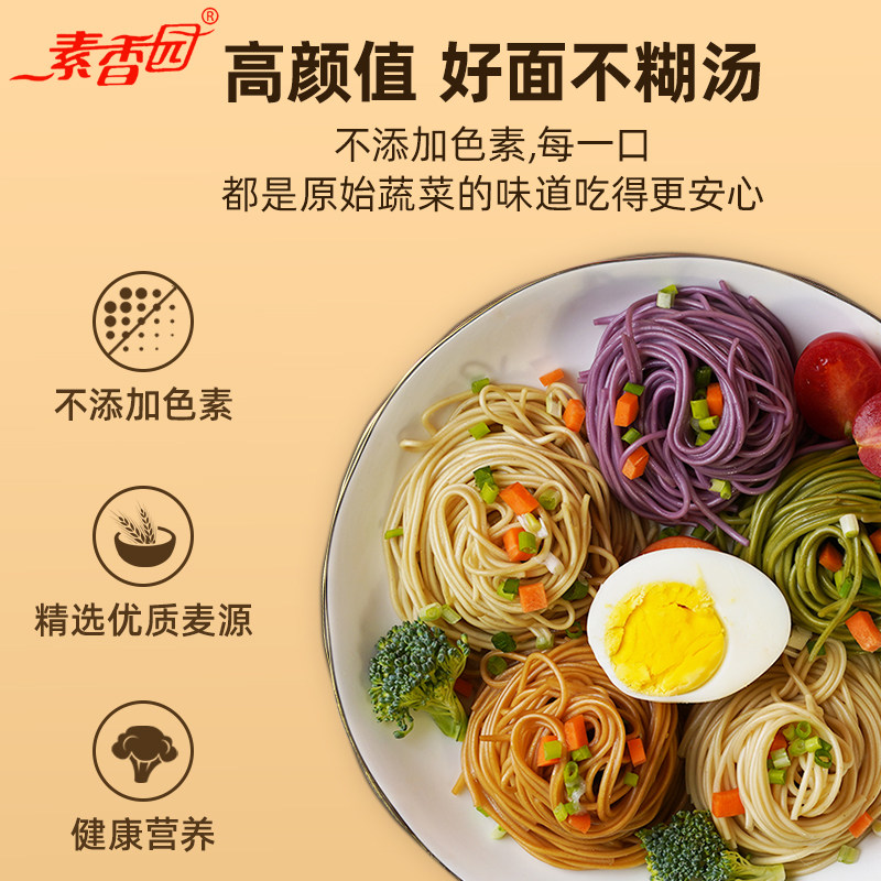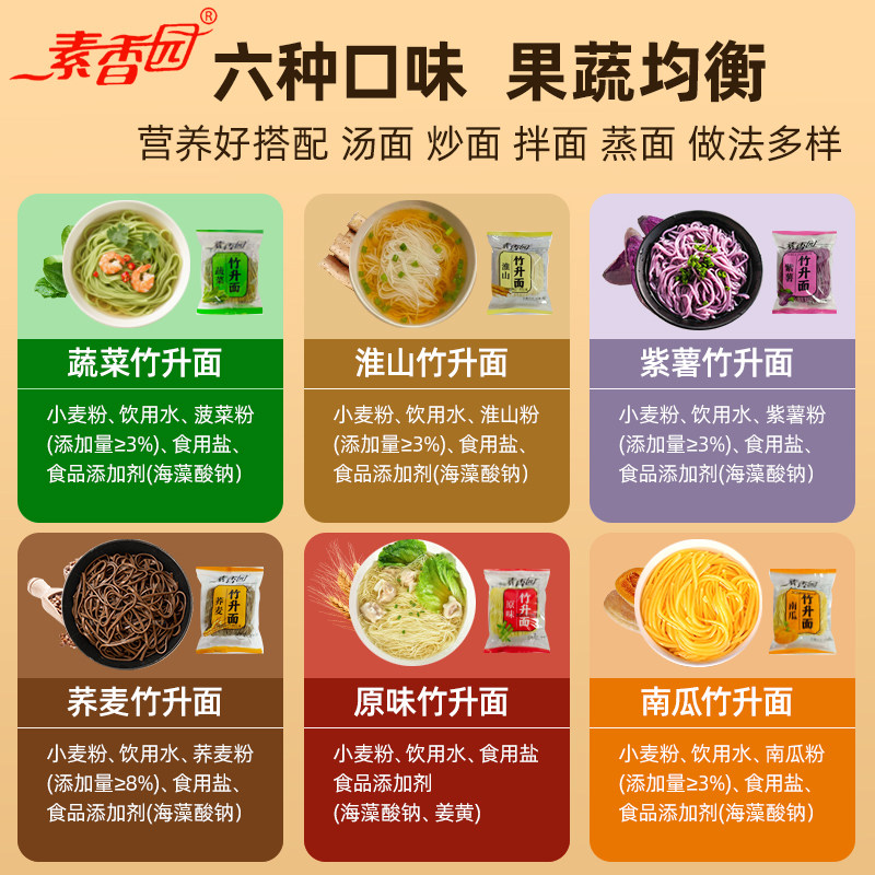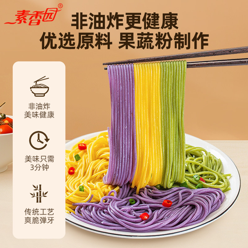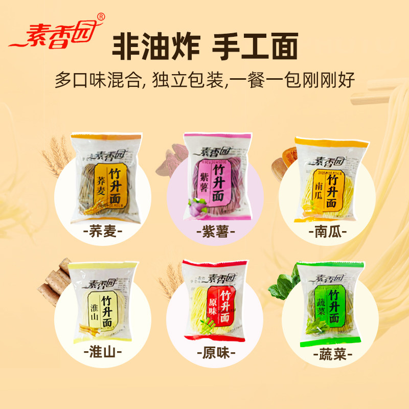 素香园非油炸竹升面手工果蔬速食淮山荞麦南瓜蔬菜紫薯彩色面袋装