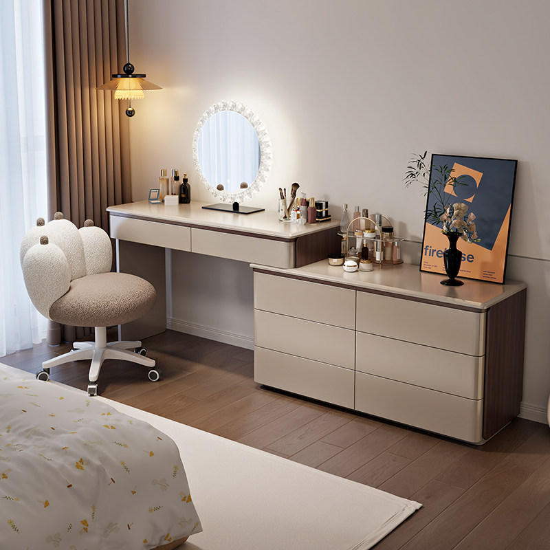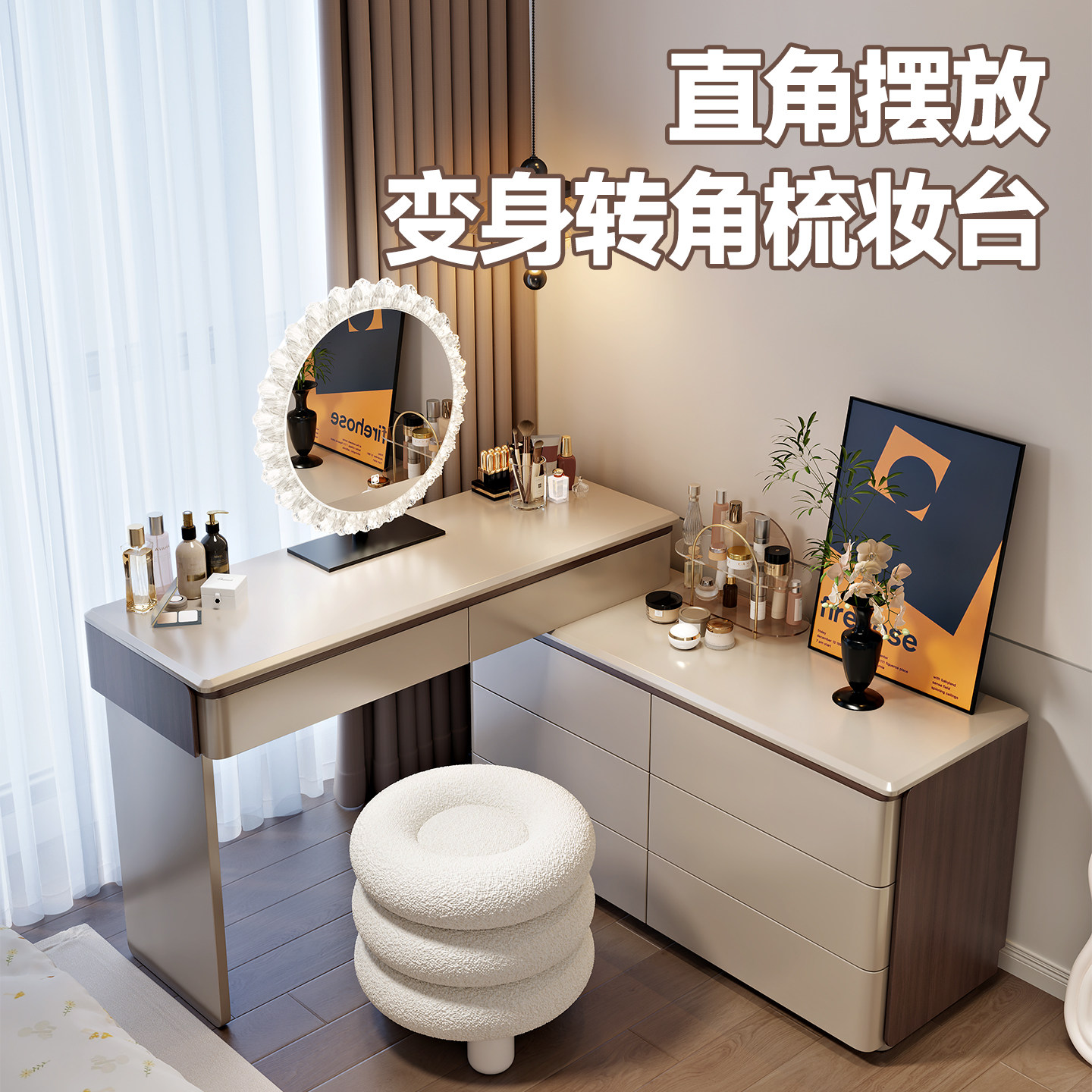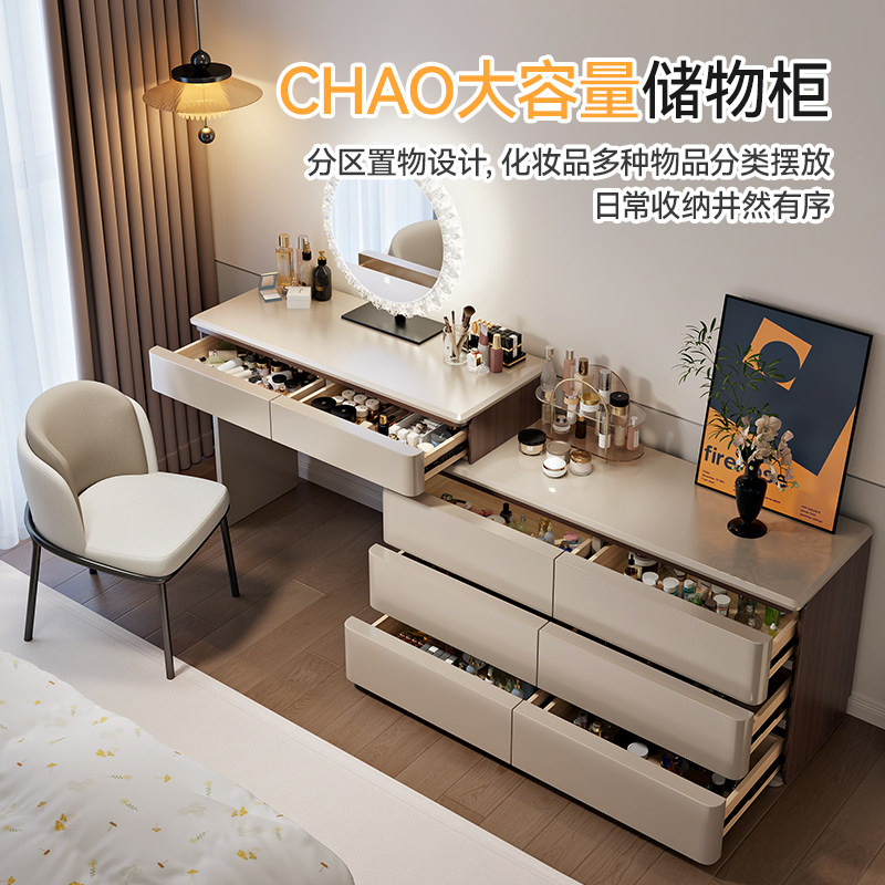 实木烤漆梳妆台收纳柜斗柜一体卧室现代简约化妆台床尾伸缩化妆桌